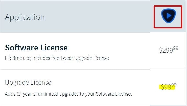 Then I would suggest you contact support (help@topazlabs.com) and ask them to explain the discrepancy. It is true, however, that on a single per-product basis the upgrade cost is approx 66% of the purchase cost - which would put the AIV upgrade cost in this case at ~$199 all else being equal. But, since the upgrade cost for all four AI products, as a bundle, is only $99 perhaps they envisioned adjusting the single VideoEnhance cost downward. I would ask them to stick to what they have posted.