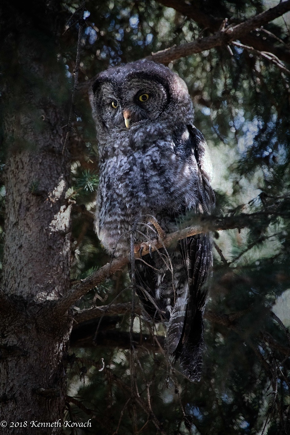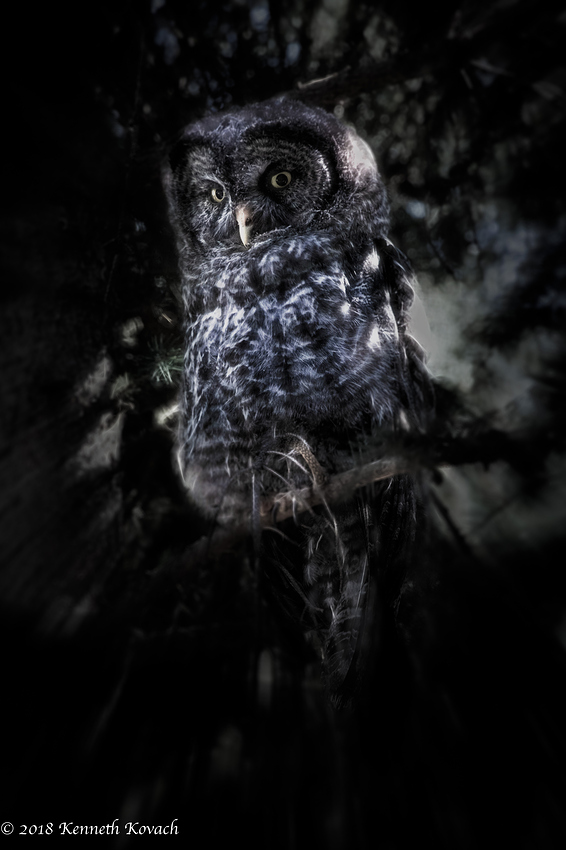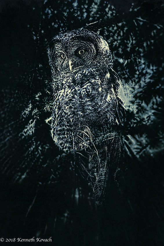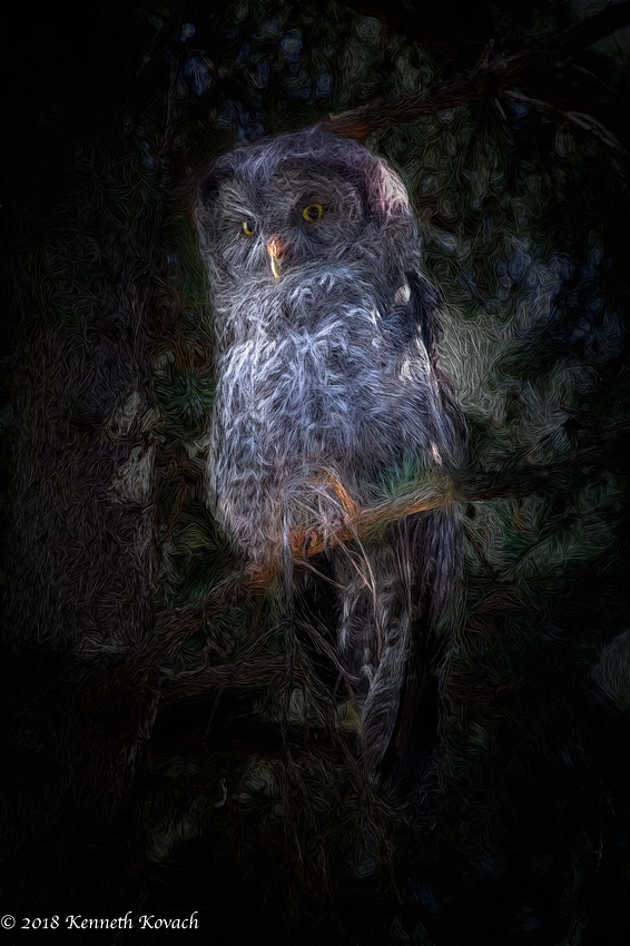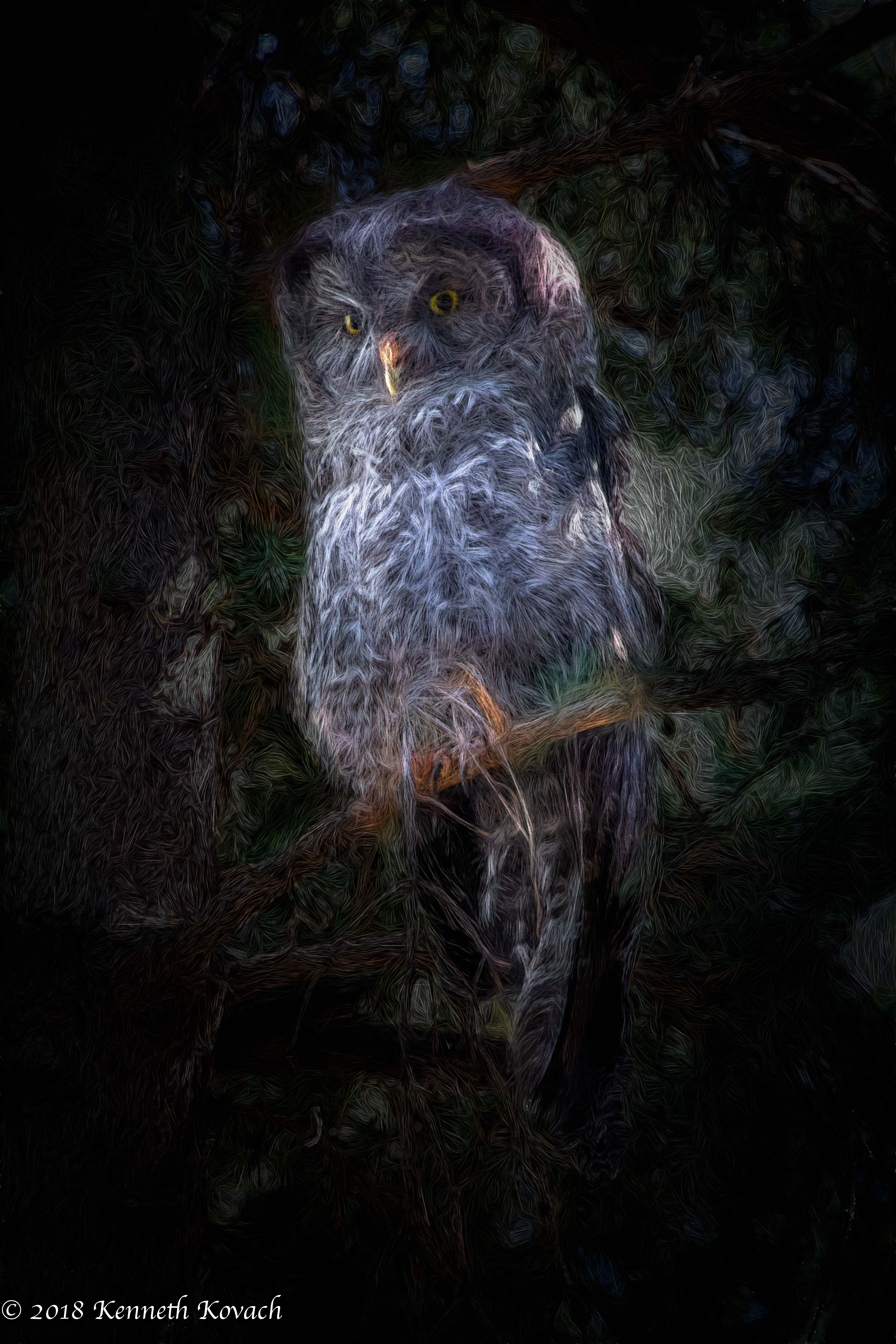 I took this shot (actually two shots) of an owl, and then kept working on different variations, with some of the older Topaz Programs. I decided to stop now, or I would have kept going all week. Which one do you like best?