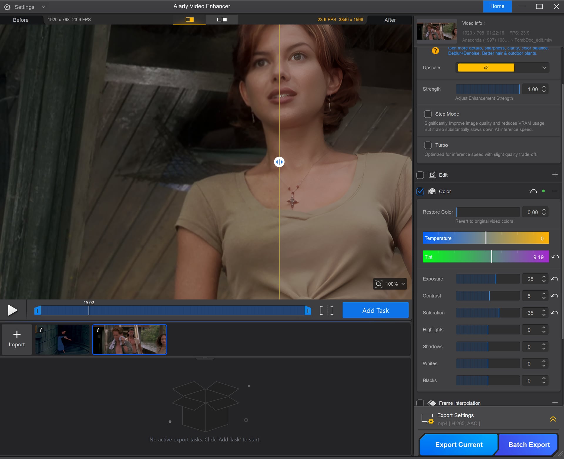 Here is Aiarty AI Video Enhancer’s built-in color sliders.
