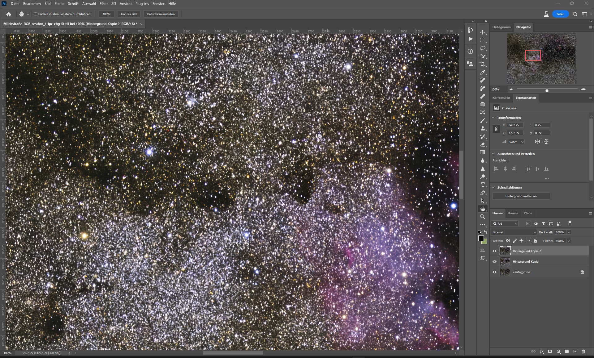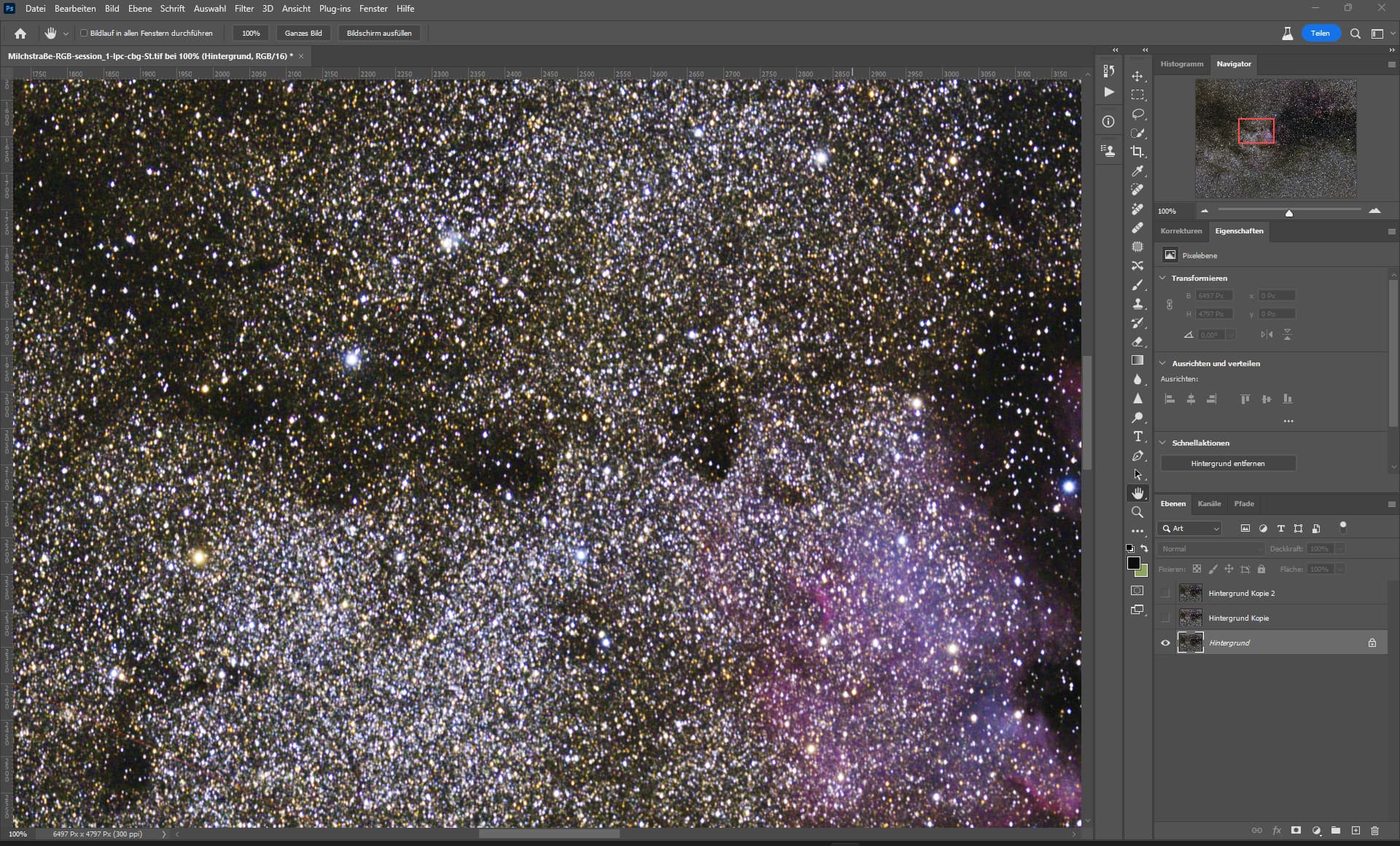 Stacking images is typically done with specialized software that automatically aligns and combines the images. The individual images are shifted so that the celestial objects are precisely aligned in all images. Then, the stacked image is optimized using special algorithms to achieve the best possible result.