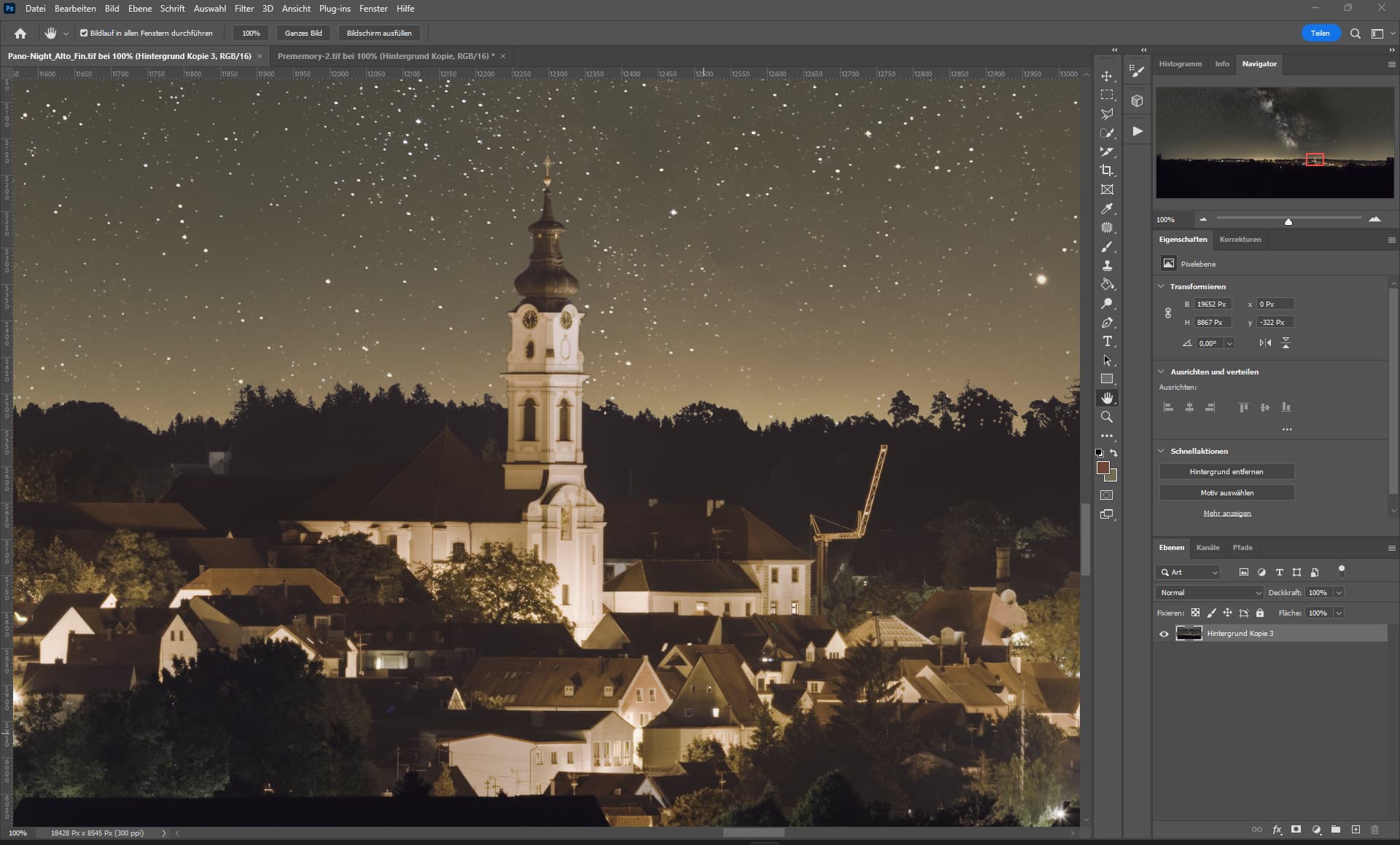 I wanted to evaluate this today by doing an astro-processing with a normal object (village from some distance).