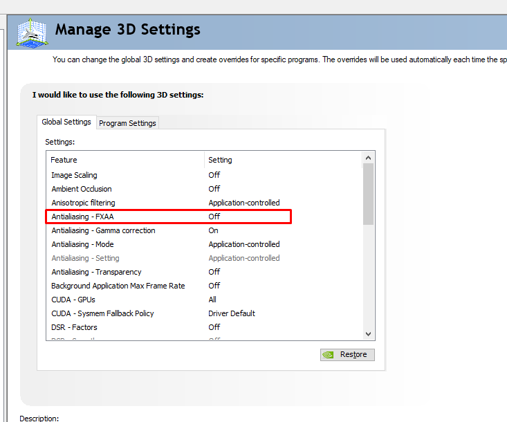 Then, restart the computer and let’s open the Nvidia settings panel and check on the FXAA setting. We will want to turn that off so that it does not interference with the MPV player in the app.