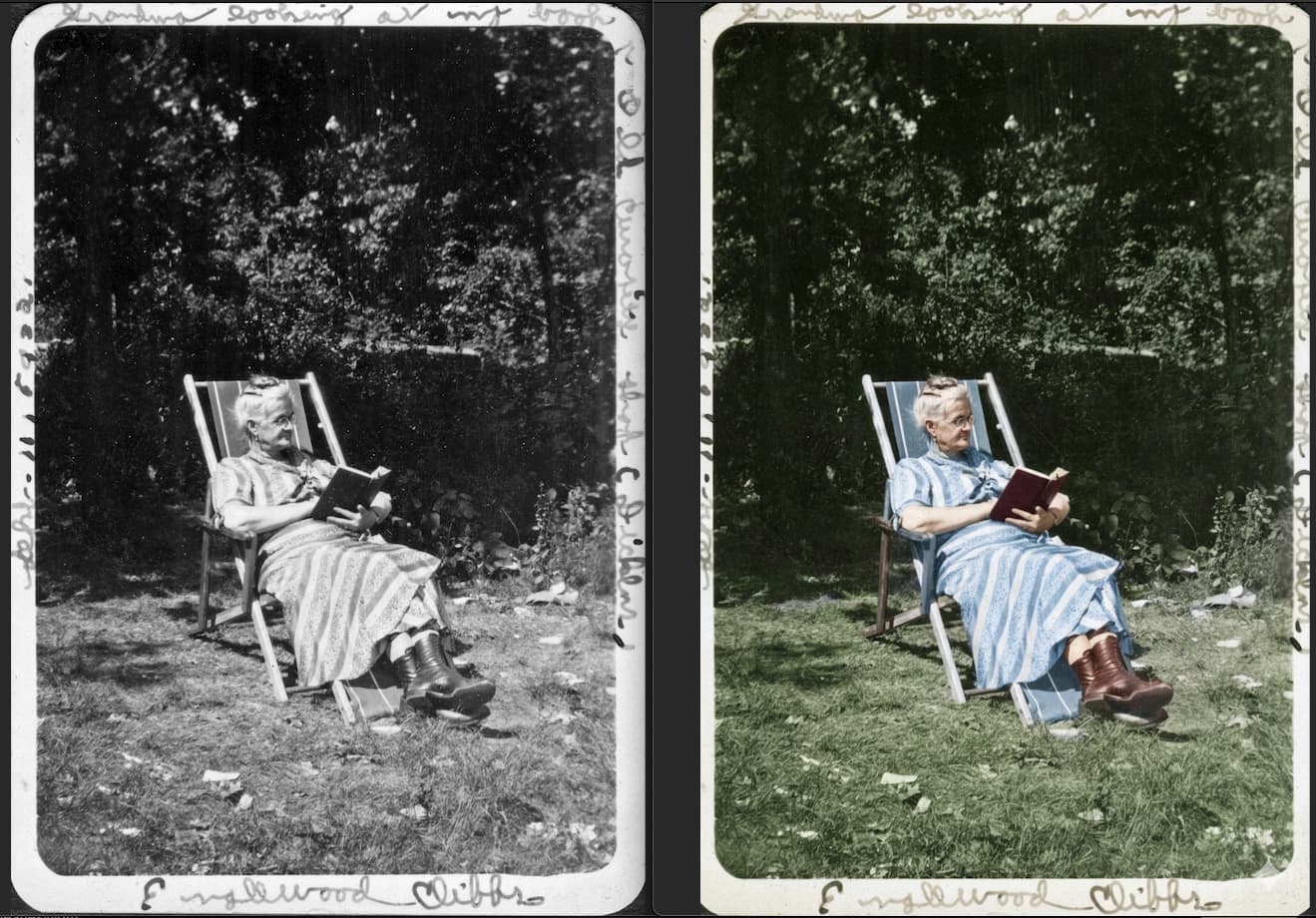 Oh yeah, colorization would be great. I also recently played with (65-115 years old) b/w photos of some relatives and some apps colorized them acceptably, I especially liked the ones that used muted colors, nothing screaming. I think your g-g-grandmother is quite nicely colored.