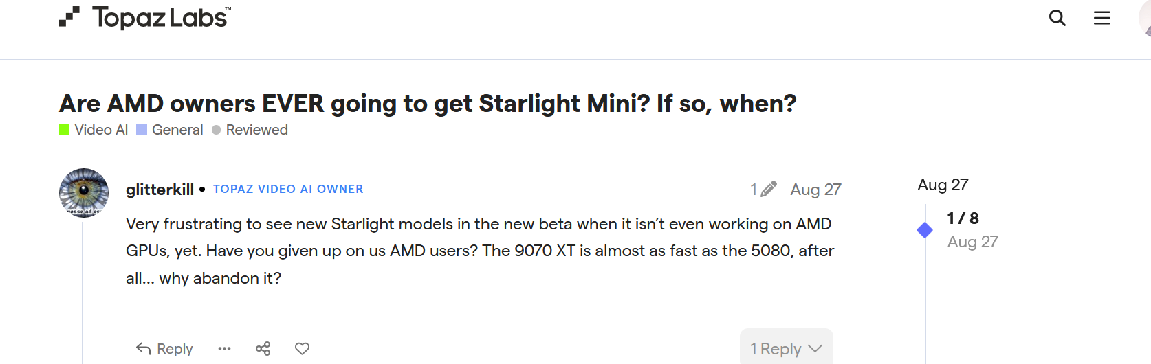 Ok I have the answer - lol starlight mini doesn’t work with AMD stuff. Well that has saved me wasting my money further with Topaz.