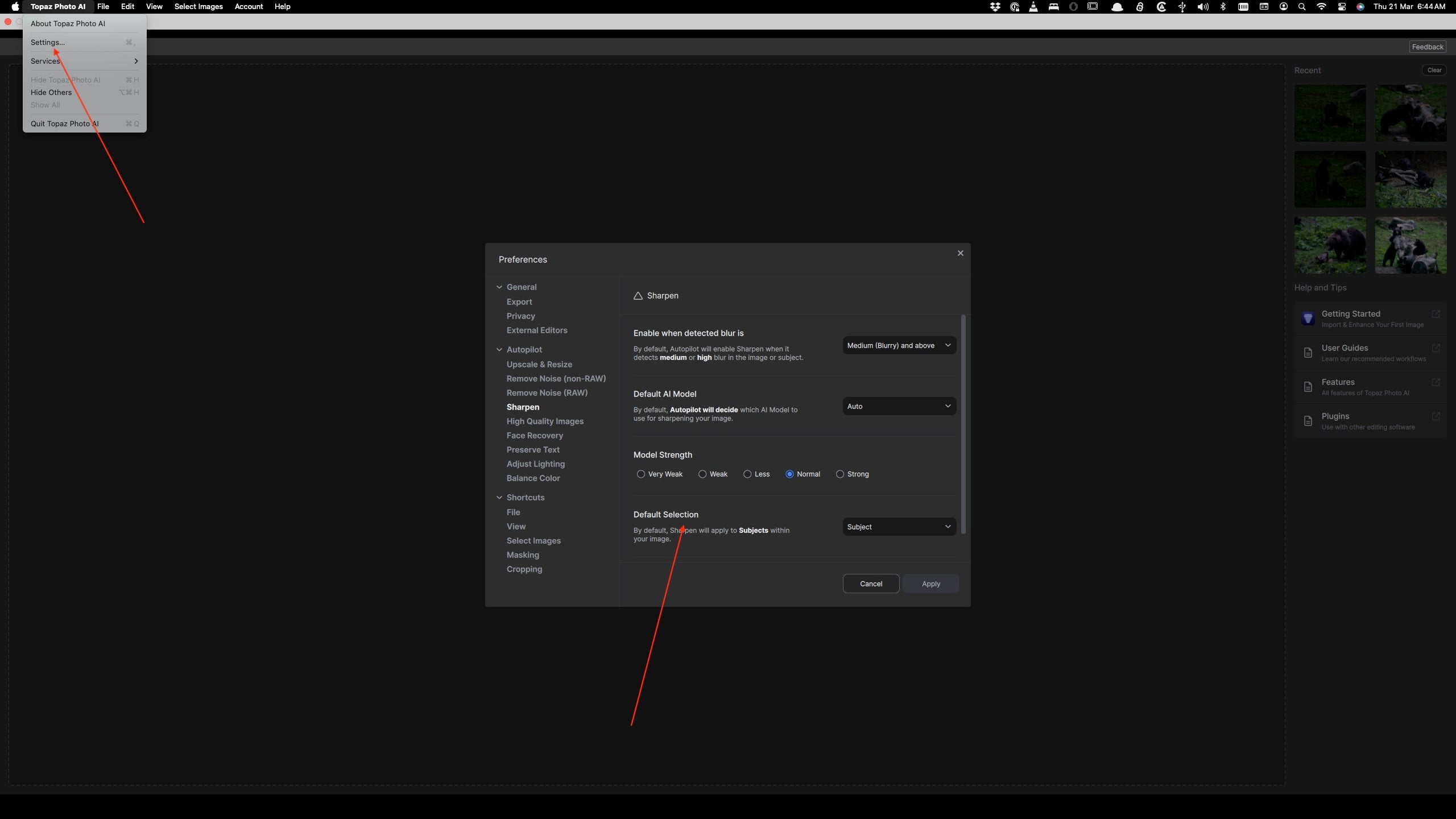 You can have the programme default to Subject by choosing it in Settings>Sharpen>Default Settings.