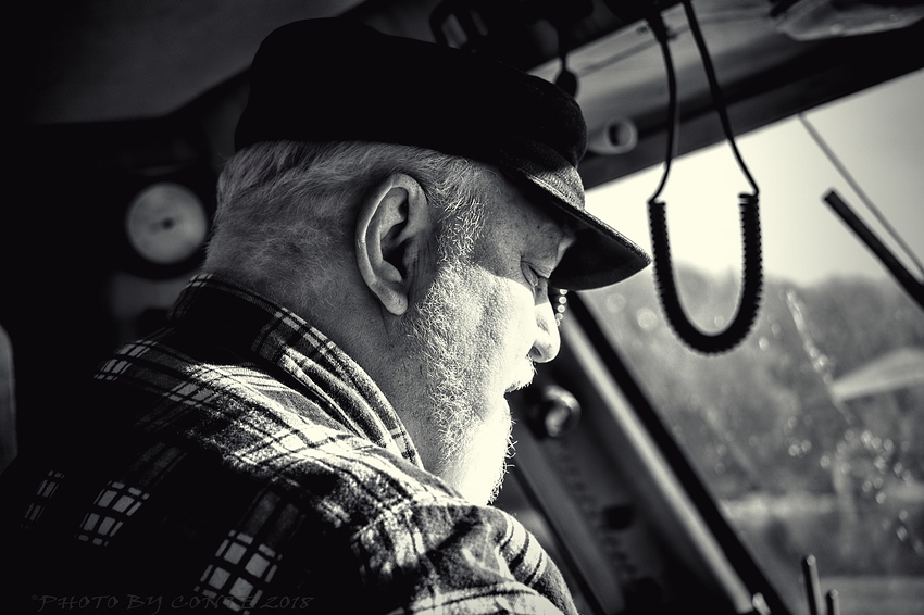 Capt. John was intense as he piloted the 49 foot DeFever trawler down the waterway.