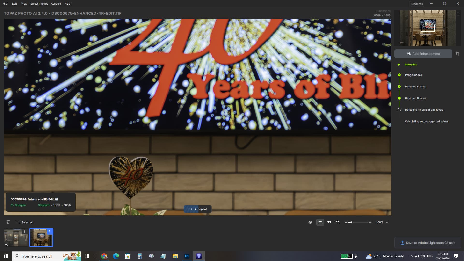 Select at least two files in Lightroom. Right Click and select Edit in Topaz PhotoAI, and select Edit a Copy with Lightroom Adjustments. Both Files will open in Topaz PhotoAI, with the first file selected. Even though the AutoPilot has been disabled in the Preferences, the program still goes through all the AutoPilot settings, but does not apply them to the image. This seems to be a waste of time.