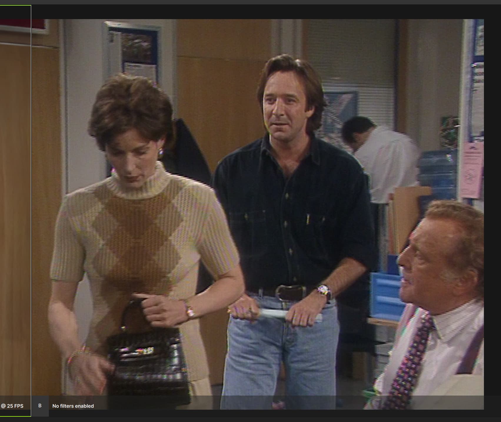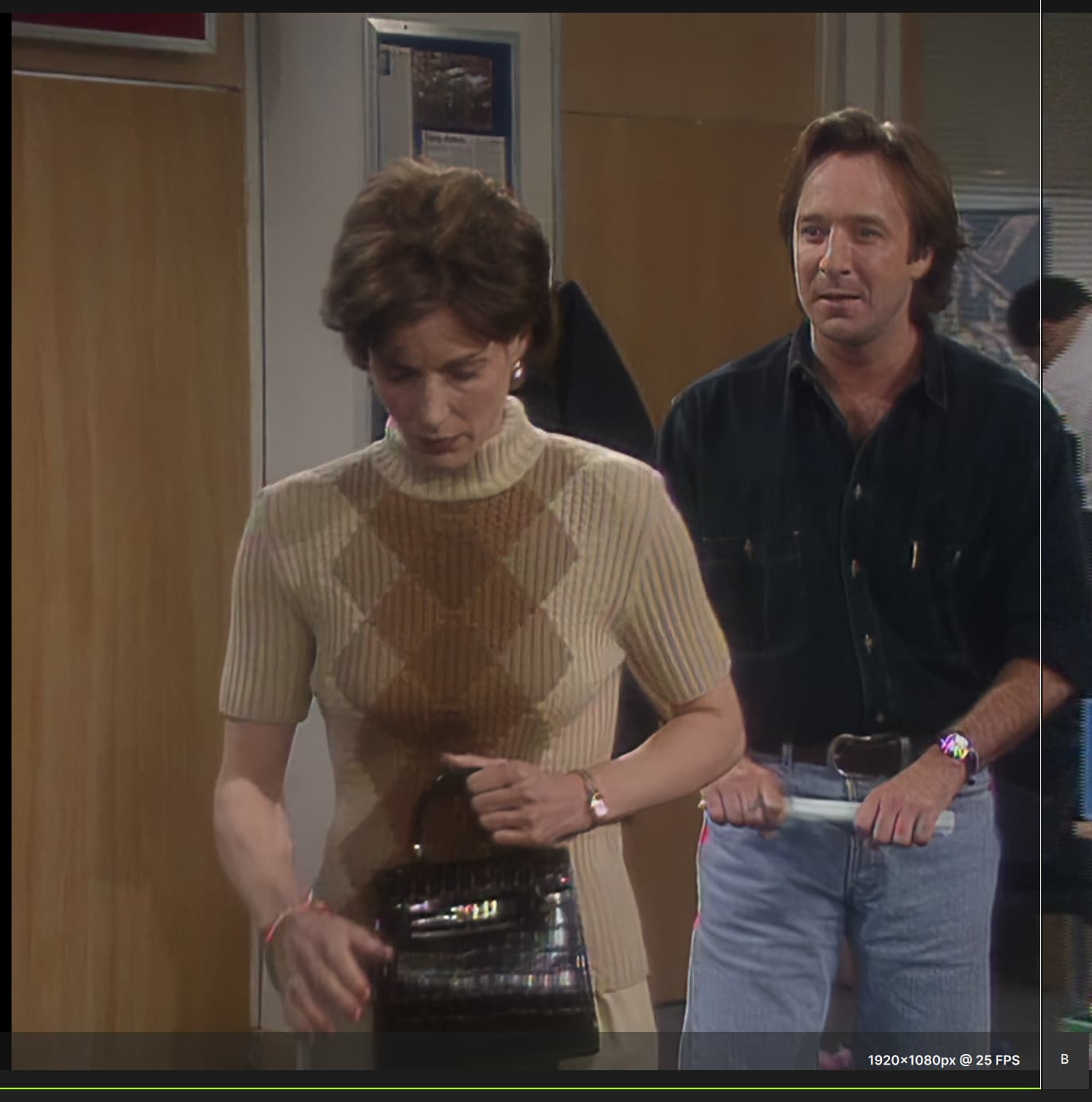 Granted the lighting is poor and there is often the odd (colour) reflection it is usually brief and not as noticeable as in the de-interlaced and upscaled version.