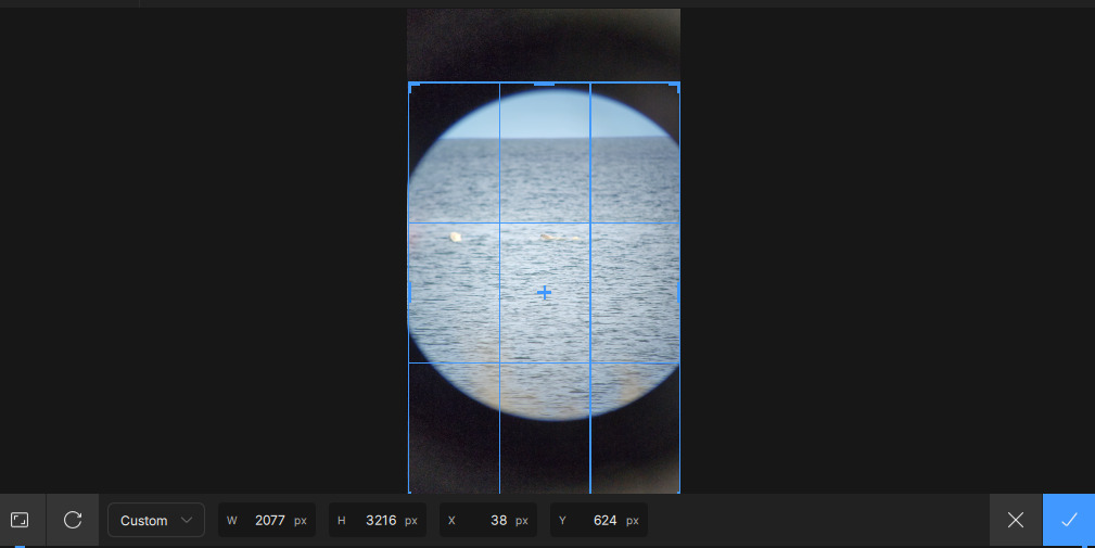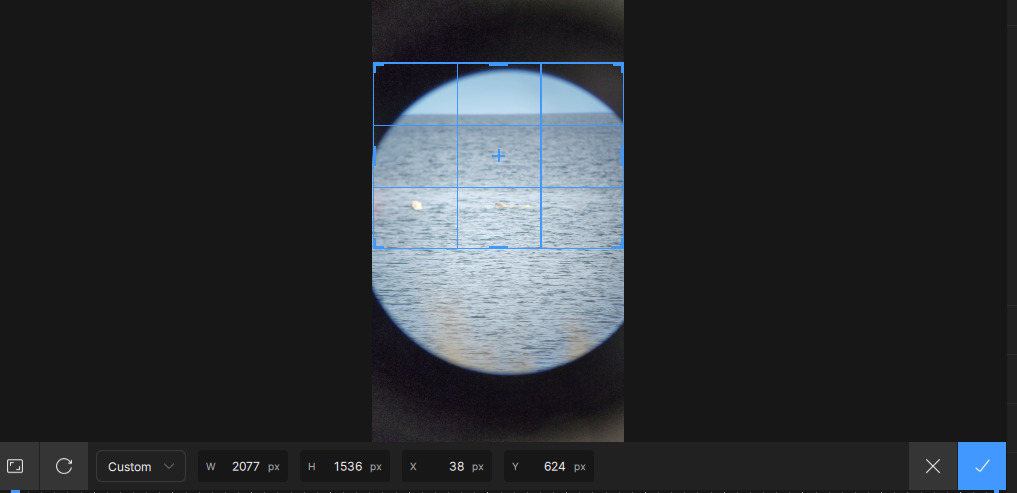 I can move the upper, right, and left handles to change the crop, to something like this: