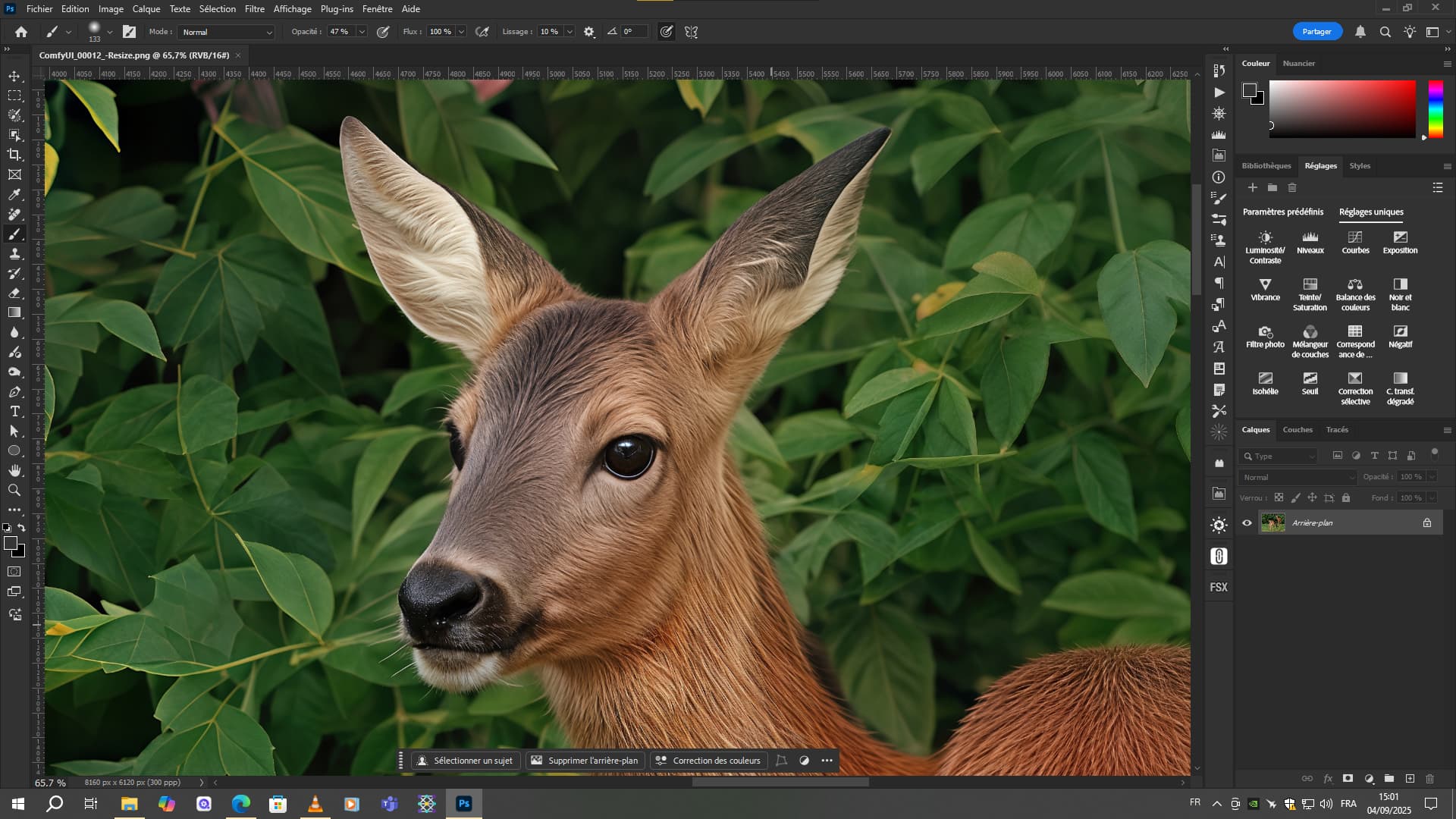- Enhance clarity in the foreground (deer and fruit) while maintaining a soft but consistent background.