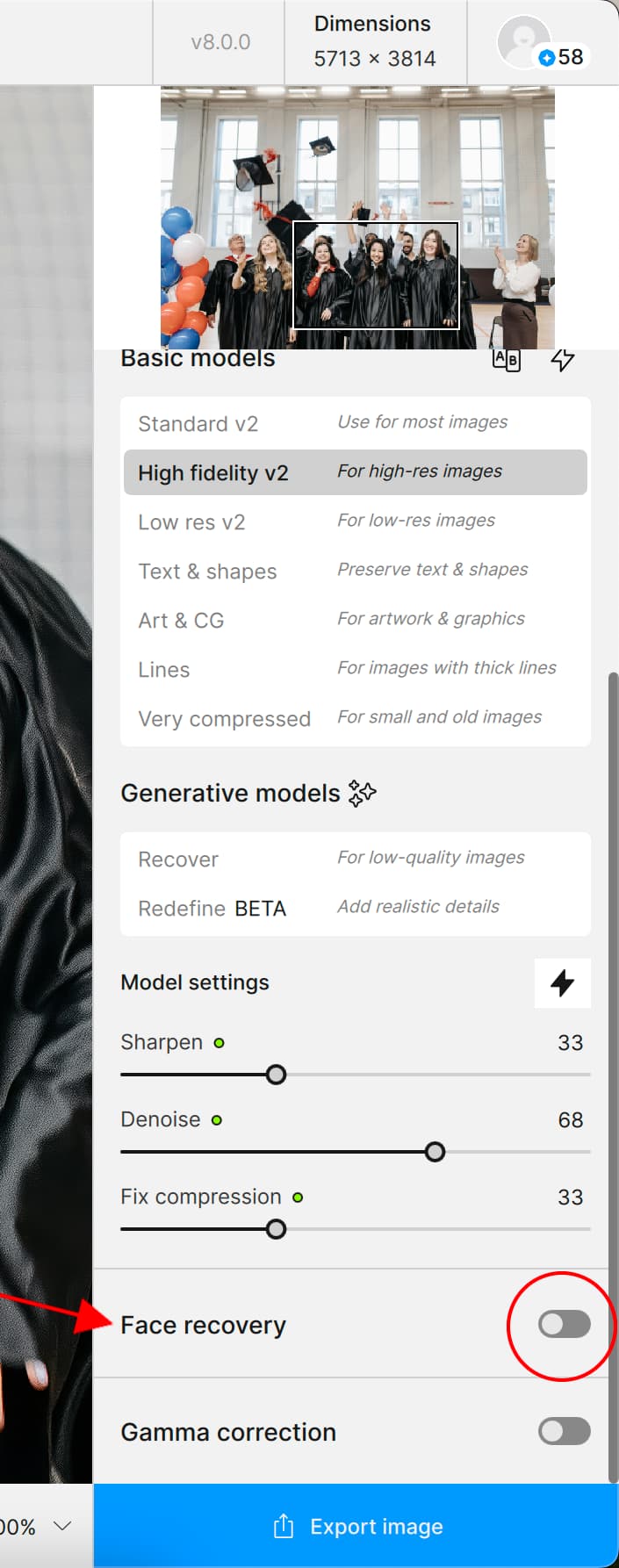 Therefore, if you turned on Face Recovery for an image then closed Gigapixel the next time you open Gigapixel the toggle switch will remain On because, the application will have remembered your previous setting.