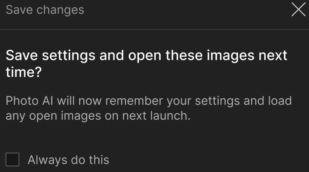 Now when you close Topaz Photo you will be asked to Save Settings and open these Images next Time