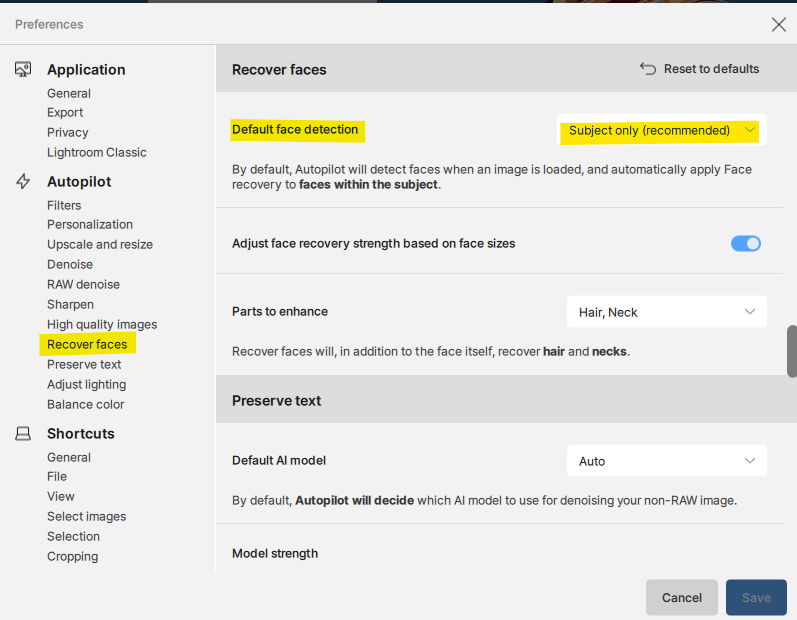 Oversharpening of eyes/facial features of people in the background (bokeh) when using the Recover Faces feature. It is not natural looking.