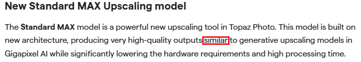 I’m afraid, you misread the information slightly it doesn’t say similar to Gigapixel AI it actually states.