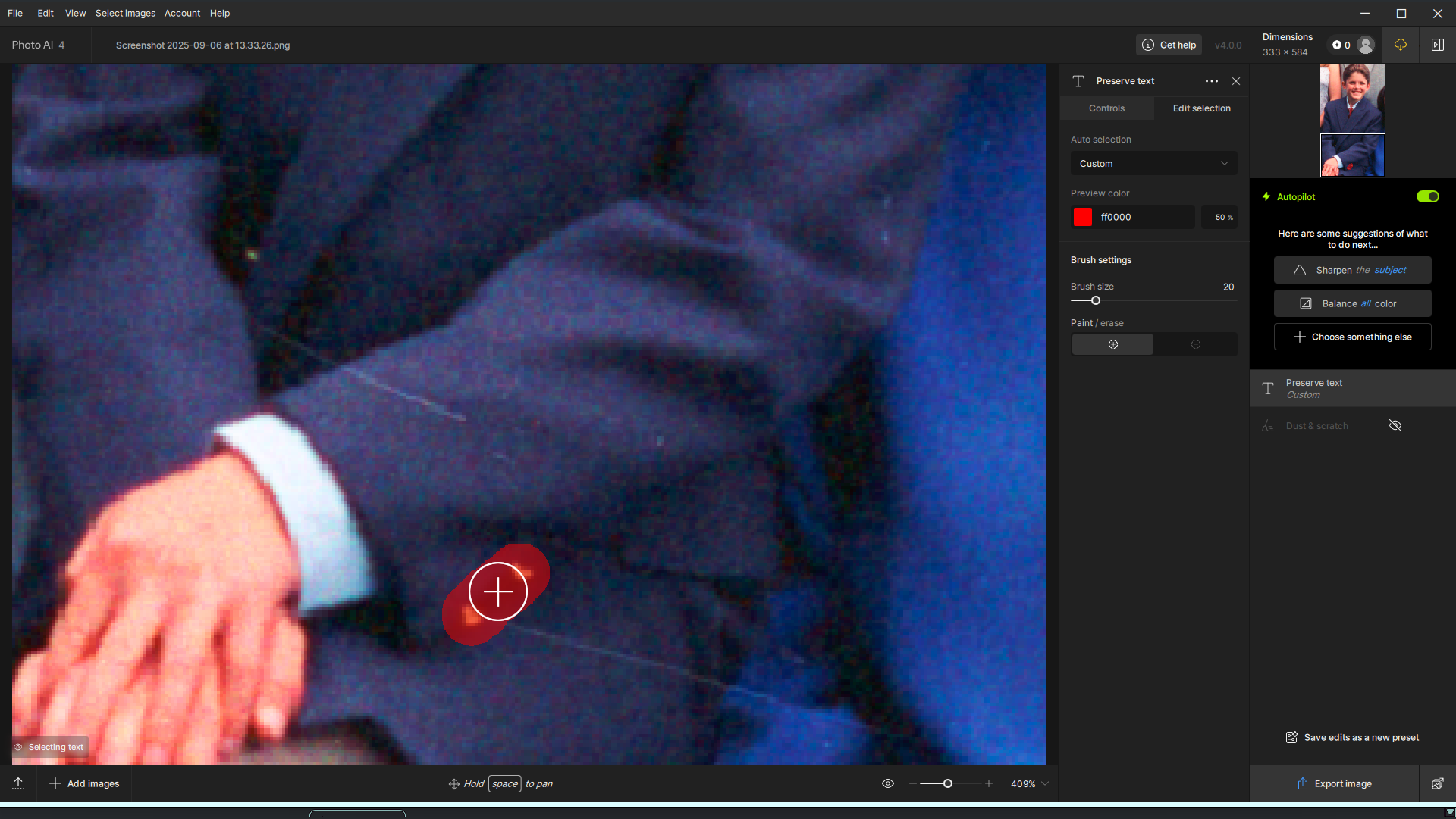 I applaud the Photo AI 4.0 beta Dust & Scratches feature. However, it still needs a lot of learning and refinement.