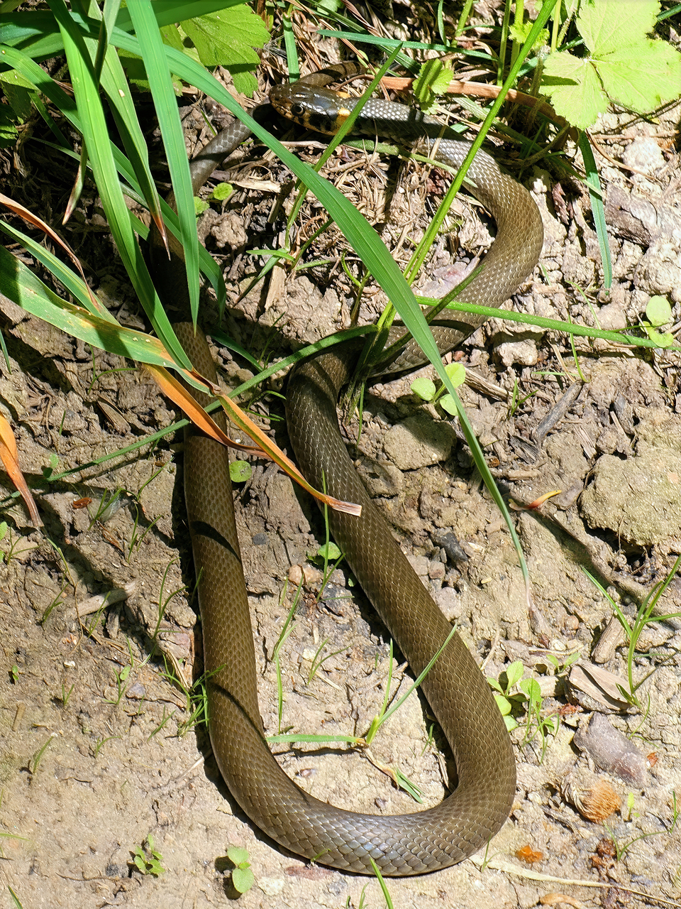 I found another photo; the original (crop) was not technically so bad, but it needed improvement. It is an interesting (non-venomous) snake living by a pond and it can swim beautifully. This time I didn’t miss it because it was cold and the snake is a true reptile, thermophilic, so it didn’t run away. I think its name is Grass Snake(?). I tried to improve it (enlarge the crop and improve the scales on the body, possibly the head too). The best result was obtained using Gigapixel-redefine-realistic-4x and then Topaz-denoise-lighting. Maybe it’s not that bad, no other additional method gave me a better result (Nano Banana not used). I don’t even know what else to improve (but experts would certainly find). I’m probably going to improve the color of some parts of the body, which have lost their color due to sunlight (gleam). But that’s for another program, so later. Now just for illustration: