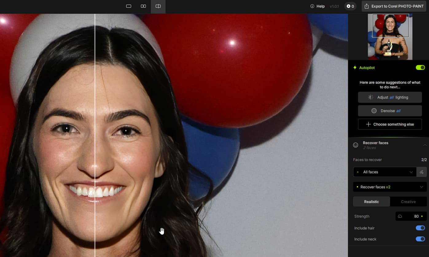 For now, we recommend leaving Face Recovery off for detailed portrait images like this one. Really appreciate you taking the time to share your results, it’s feedback like this that helps guide future improvements.