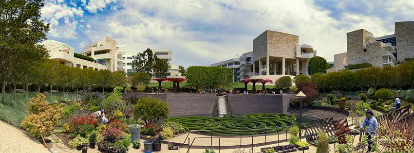 Composed on 7 images shot handheld (no tripods allowed) at the Getty Museum in Brentwood, CA. Nikon D7100 1/1250 sec @ f/14, ISO 1600, Sigma 24 mm f/1.4 ART. Merged in Lightroom and exposure adjusted, finished in Photoshop with Topaz Adjust and ReStyle to make it look like late afternoon. I had not used ReStyle in quite some time since Textures came out. Will have to concentrate on it again.