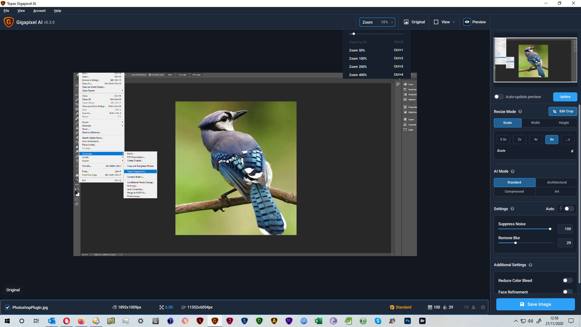 Not really sure I believe what I’ve just seen, but I’ll try and explain it anyway. After replying to Fotomaker’s post I tried using Gigapixel as a plug-in (I rarely use it that way except when testing) and came across the same problem. I tried it on one image only. Afterwards when I tried it as a standalone it worked as expected (i.e. as it should) on every image I tried. Returning to using it as a PS plug-in on the same image as used in the first attempt showed it working properly. Go figure!