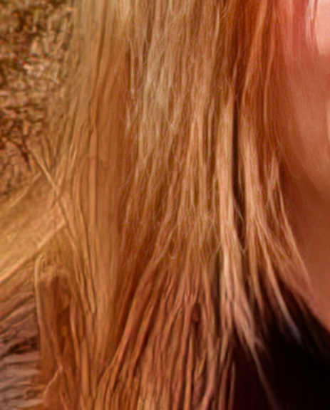 However, there’s an issue with long-haired subjects, namely, just by looking at their hair, you can tell where the face-enhancing algorithm finished its’ job. This tool needs some sort of masking to make this face vs non-face border less visible. Or maybe Gigapixel just needs another model that would be capable of enhancing hairs and hair-like objects.