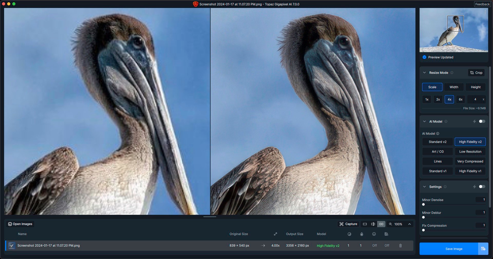 The only effort I made was to choose magnification sizes and experiment with different AI Models. No other settings were adjusted.