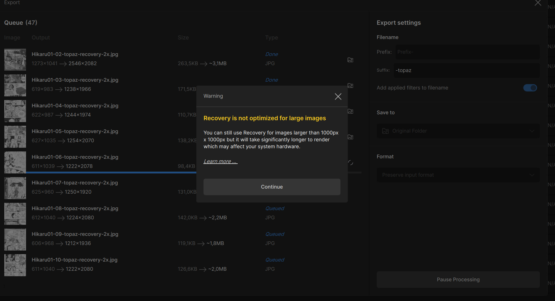 Perhaps I have one modest wish. When I open the original photo in Gigapixel, I set Fit (overall view) and then select the appropriate part of the photo to Crop. However, after performing Crop, I do not see Fit, but a very enlarged result from Crop (100%). But I would like to continue to have Fit (after finishing Crop) and only then decide how to set the relative display size (reduce or enlarge as needed for further processing). Before the details, I want to have an overview of the whole. Just to be able to set Fit as the default value (at least for a given episode of processing a selected group of photos – OK for one photo, but for 10 it bothers me to keep repeatedly resetting Crop results back to Fit). Thanks for possibly considering my wish.