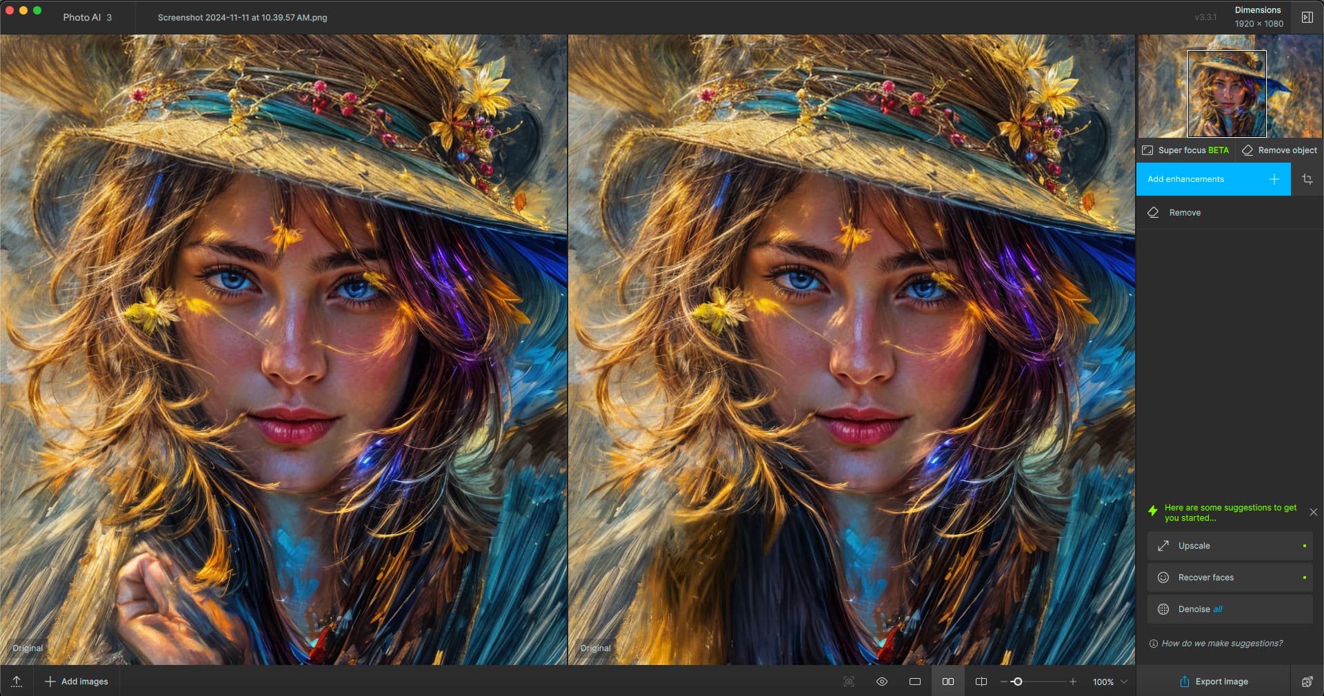 I decided to try Photo AI to remove the weird hand in this crop but got an ear instead on the first try: