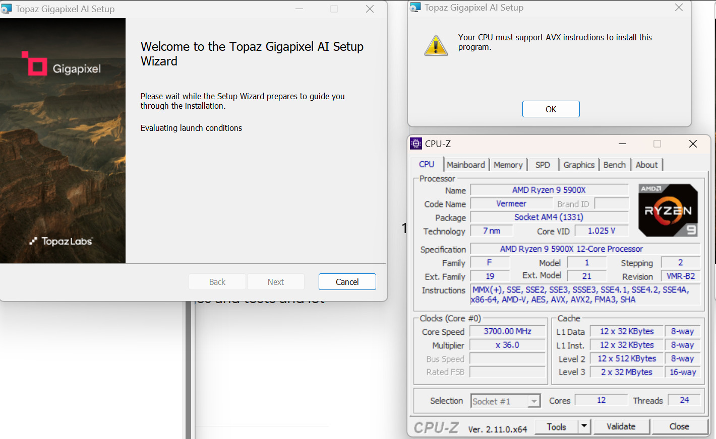 The irony of it all is that all it never gave this error before. The difference now is that I installed the very same CPU that I have been using for quite some time now without problems running GAI & PAI in a VM. Now it is instead installed in a new motherboard and running Windows on “bare metal”.