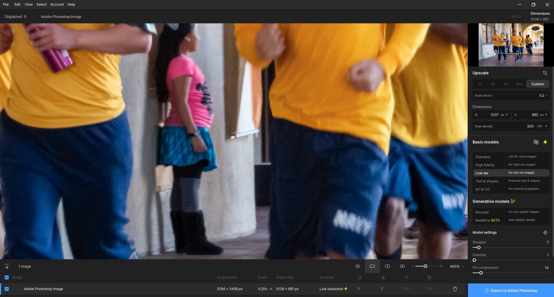 That’s what I did with the runners pic. But tried the downscale in the GAI Ps plugin…