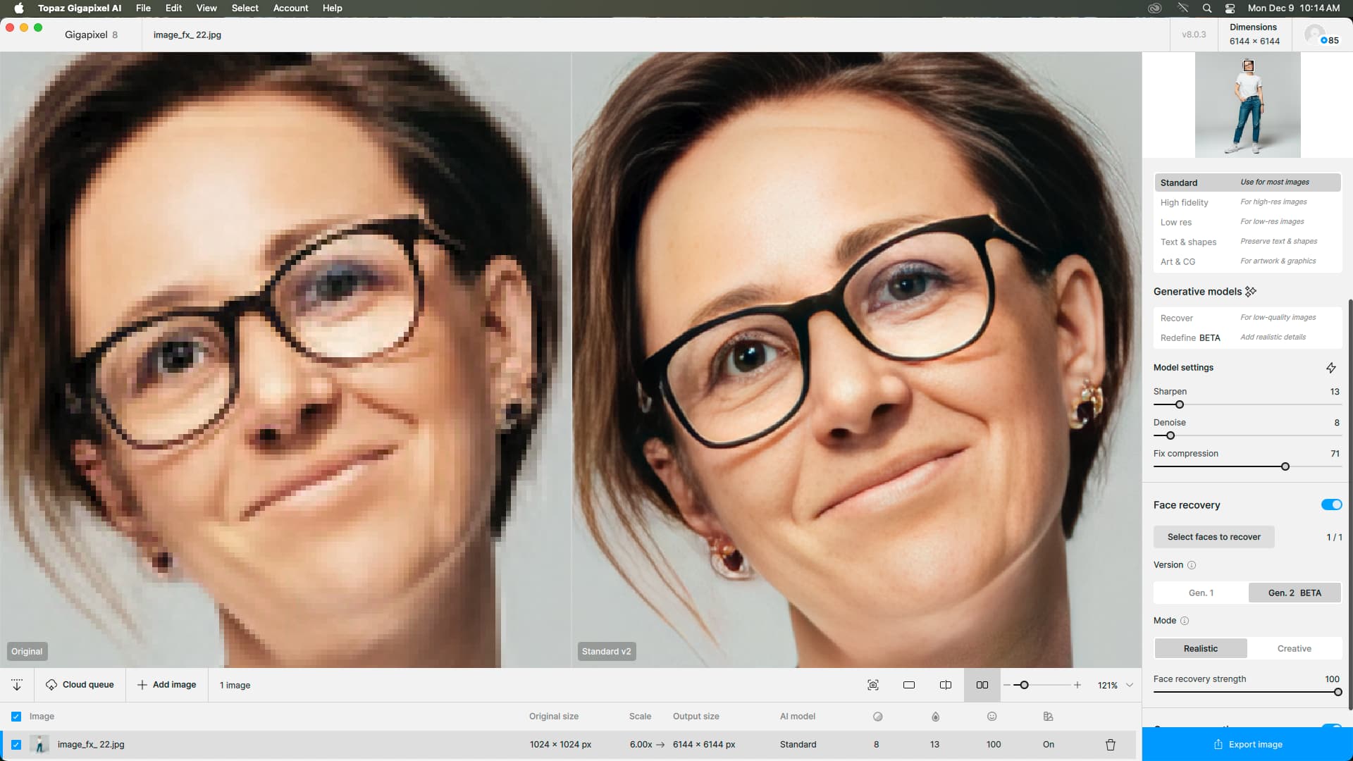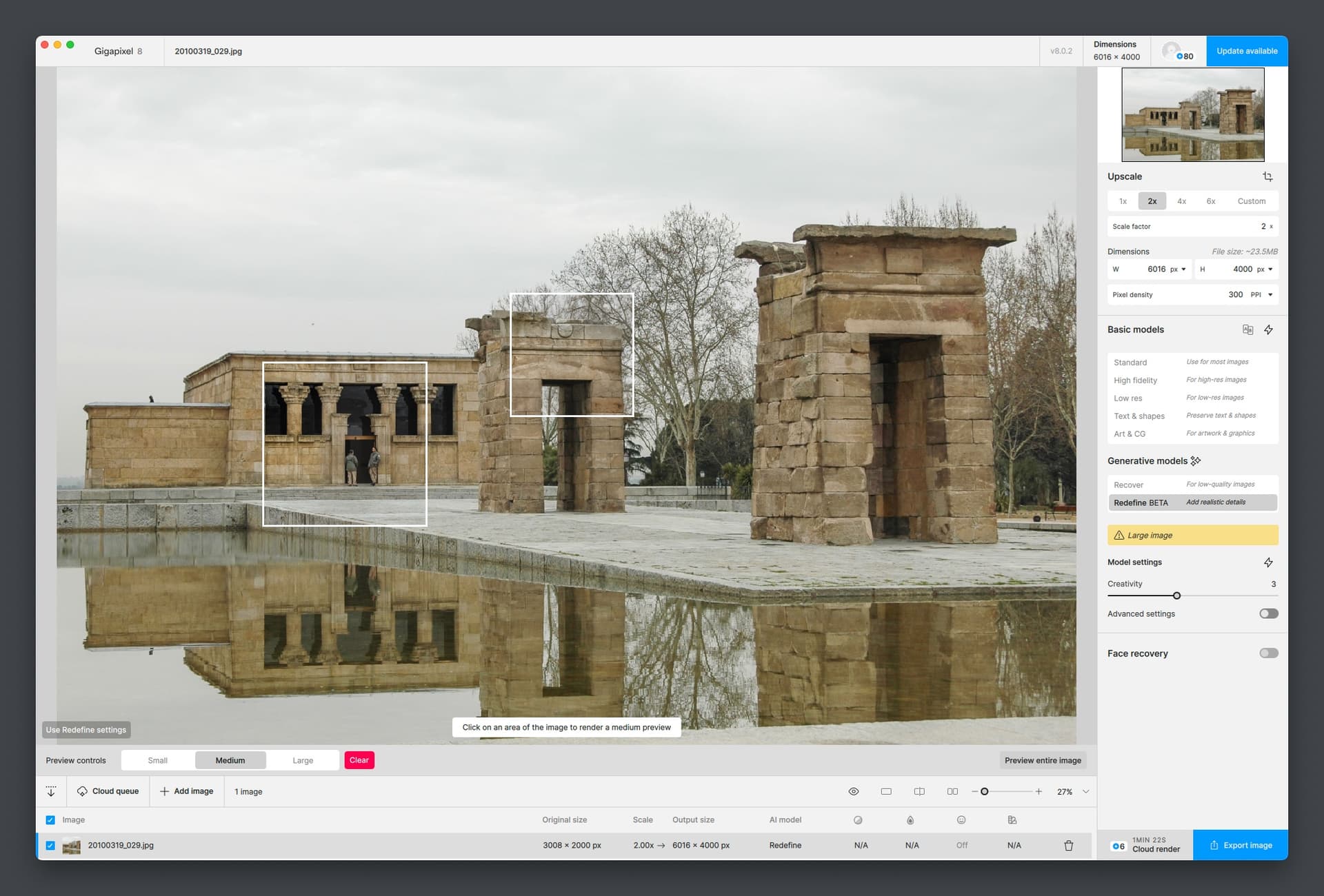 I’ve done it twice. Once with Redefine and once with Low Resolution v2. I then combined the 2 new variants to correct the artifacts in the blurred areas caused by Redefine.