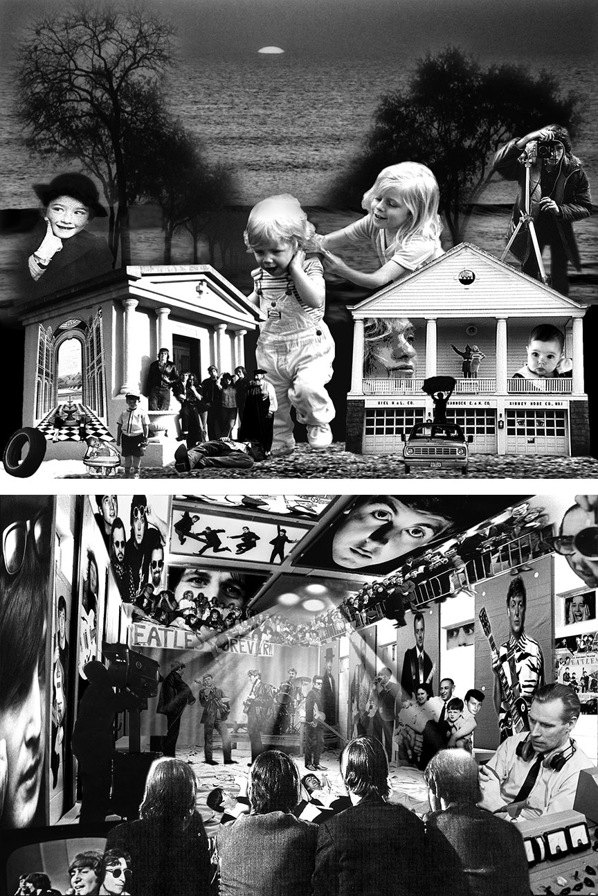 No layers, yes! Here are some collages I made while learning back then, using scans of my own photos for the top one* and scans from books over a background photo of my own for the second: