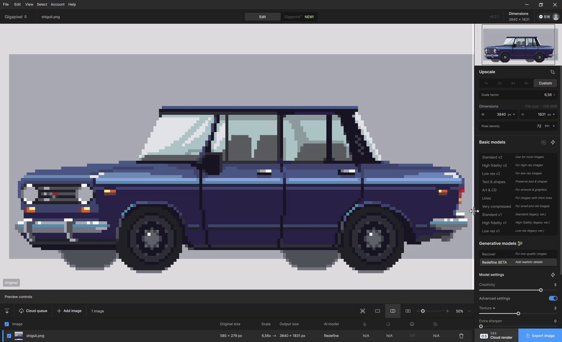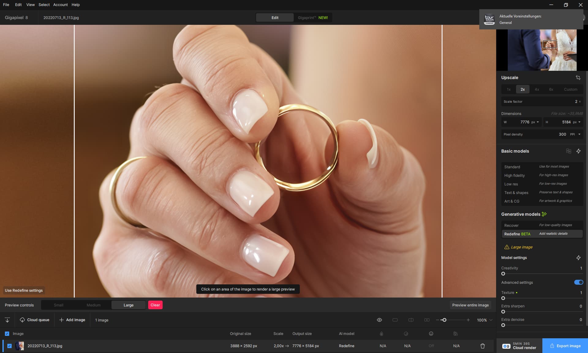 “Redefine” may be a bit of a misleading name. But as part of Gigapixel it almost always helps me improve and enlarge a technically poor photo. The difficulty (at least for me) is the predictability of the result. You have to try the right combination of parameters.