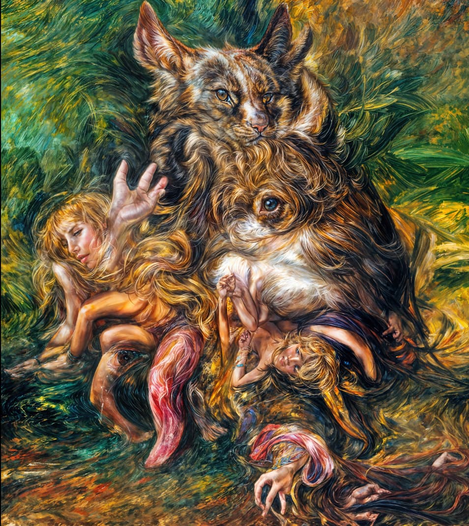Below are extreme high-Creativity and Texture renderings from my original 2022 WOMBO abstracts (created on iPhone), which mush only hinted at the subject matter that GPAI fully revealed:
