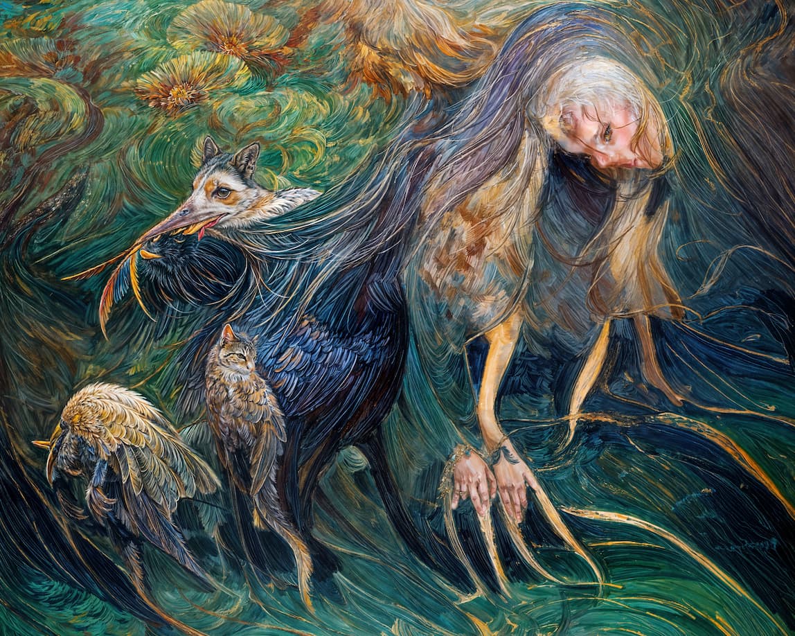 So, on the first passage, I made a variant describing the whole image and a variant describing only the background. I also made a final variant with Recover v2 to recover the beak area in between. I mixed the 3 images in Photoshop before sending the latter back to GAI with Redefine. So, on the first passage, I made a variant describing the whole image and a variant describing only the background. I also made a final variant with Recover v2 to recover the beak area in between. I mixed the 3 images in Photoshop before sending the latter back to GAI with Redefine. I used the same prompt as the first pass.