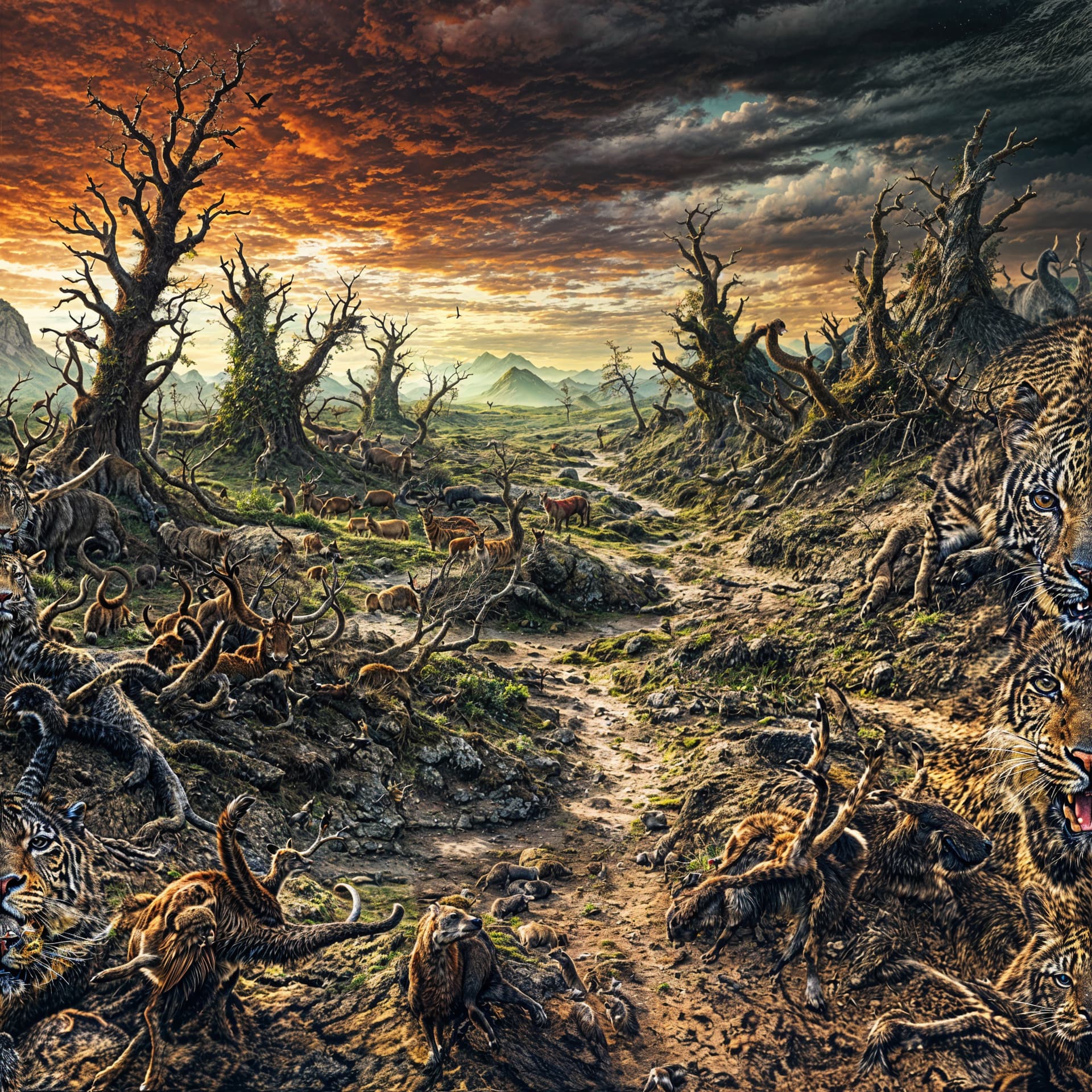 Here is my very first attempt of joining the “creativity 6” club. The first picture is out of my Stable Diffusion installation, prompted with “weird, chaotic landscape”. The second image is what c6/t5 makes out of it. The first version, not prompted, had two Topaz girls with weird anatomy in it. So I decided to prompt “animals” and the result is seen here. BTW, the versions without prompt showed almost no difference between 2x and 4x, so I decided to stick to 2x because 4x made the fans of my RTX 3080 rotate in a way I feared that the whole machine might lift off.