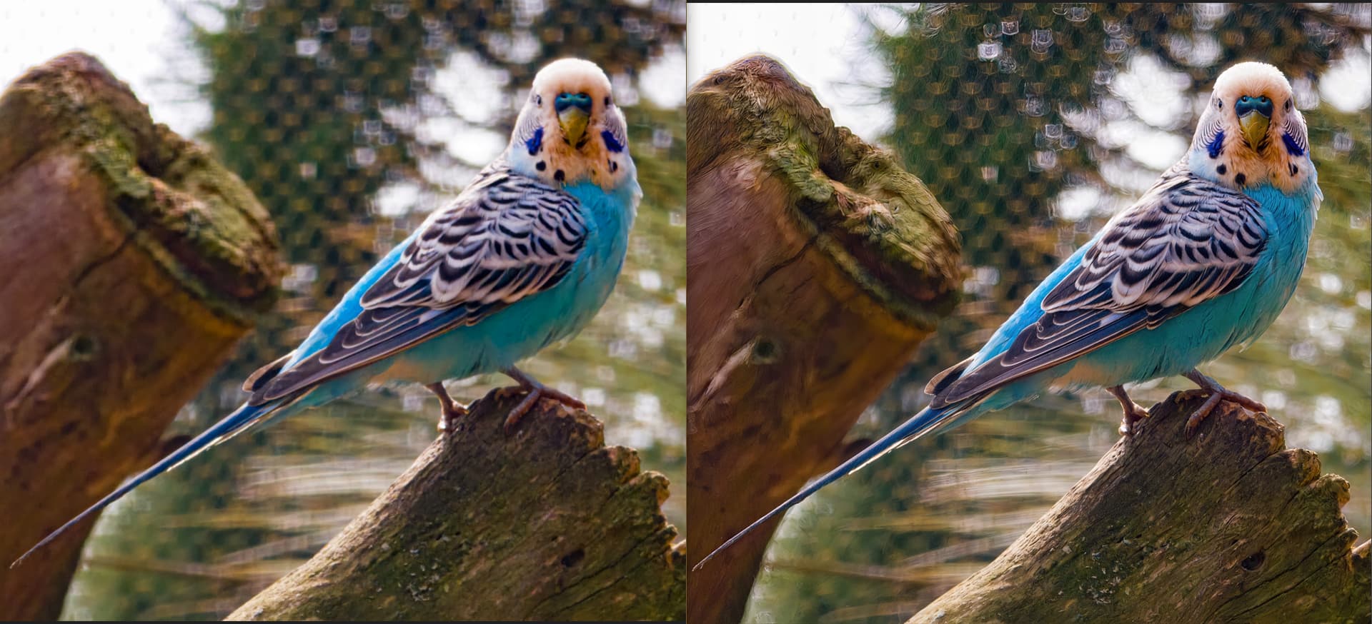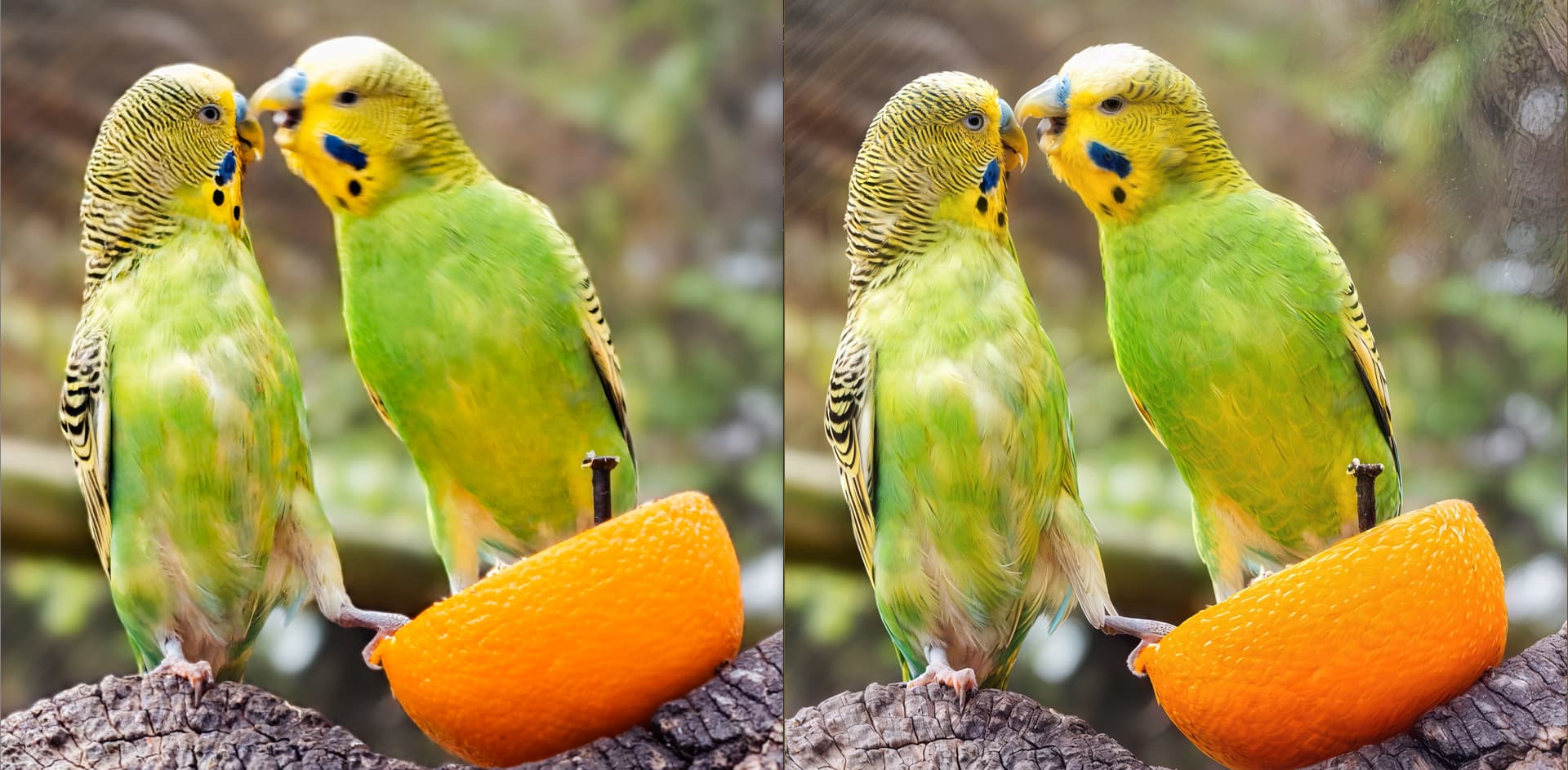 Beautiful parrots, impeccable details. It’s a pity there are distracting artifacts in the background in the images on the right, but that can be removed.