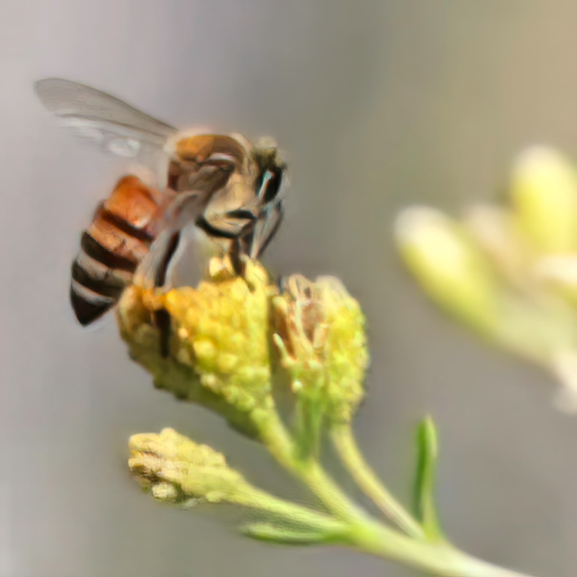 Notice the detail on the fur and the wing and such, and as for the flower it has great detail but has probably guessed the actual texture wrongly, however its a good try. The AI probably guesses well known features better such as the bee.