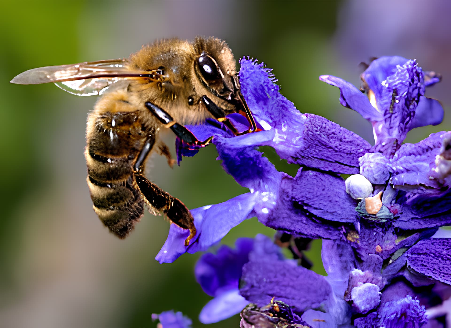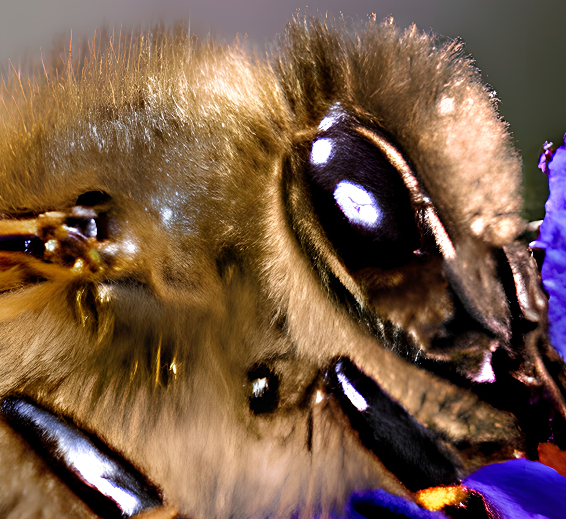 Unknown AI, magnifying just the bees head once again.(this can be done potentially ad infinitum).