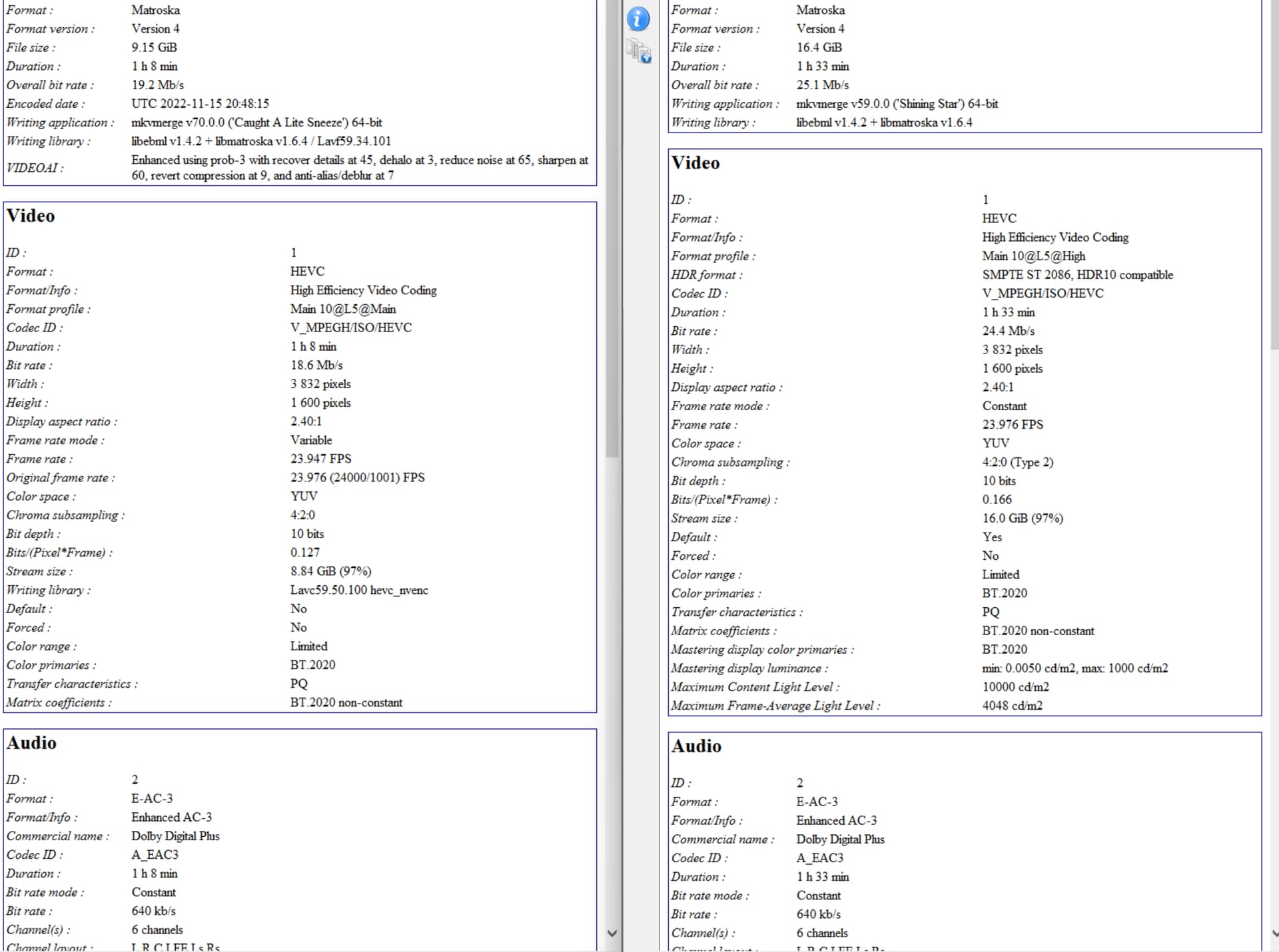 Well, I’ve already converted my HDR video to ProRes and it didn’t retain the HDR video. I have no interest in converting it again as it took over a day. DGDecNV is completely useless for reinserting HDR.