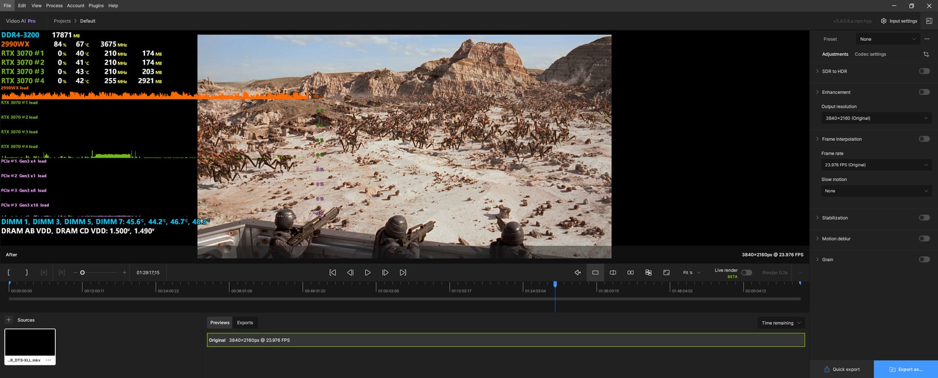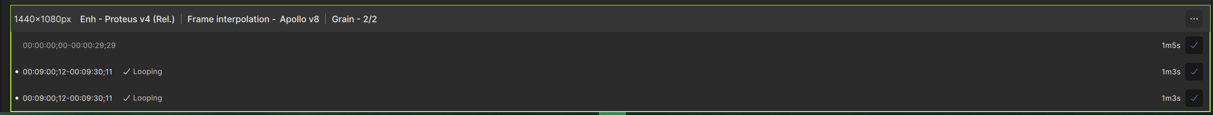 the clips processed with hyperion-proteus and normal video ai v5.3.6 that exported only partial for those screen shots the audio is messed up. only used tvai for the short clip for fast output to verify if it was a normal thing for the audio to be messed up by not being the full video. i normally output a whole video so never really see the audio sync being messed up.