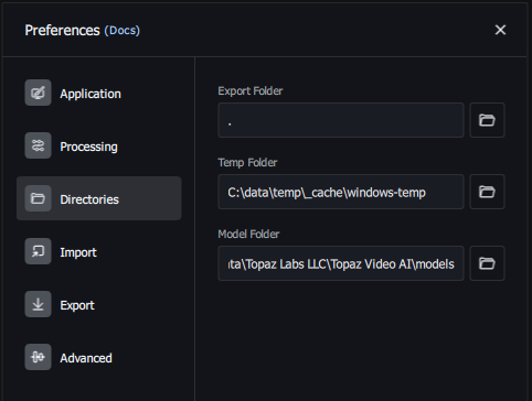 You can also change this after you have installed the program, if you forgot to change the model location during installation. Just start the TVAI app, go to preferences and change where your model directory is.