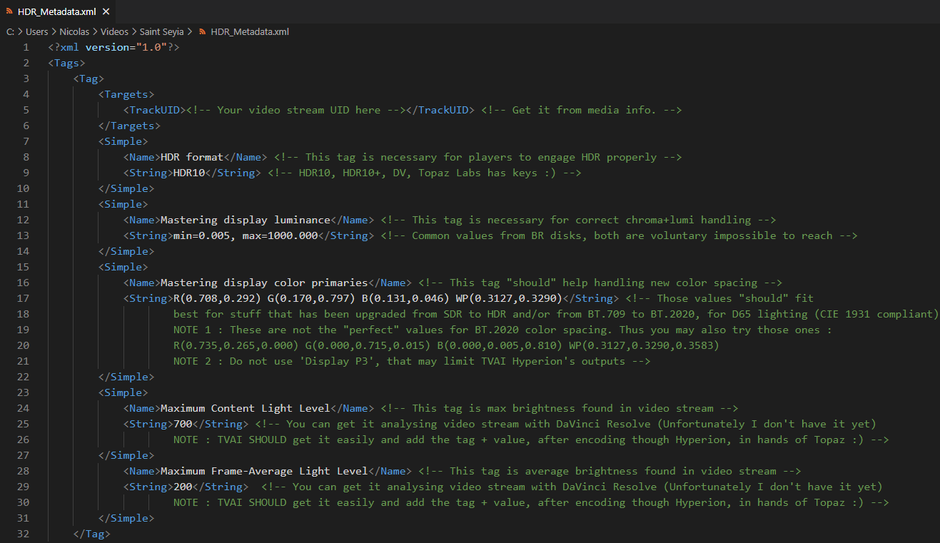 NOTE : TVAI SHOULD get it easily and add the tag + value, after encoding though Hyperion, in hands of Topaz :) -->