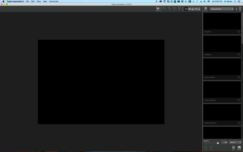 Also, Topaz Impressions 2 will sometimes freeze the entire computer when itās trying to load a painting effect profile (e.g. Van Gogh 1), then log me out of my session. When I log back in, itās prompting to reload the image.