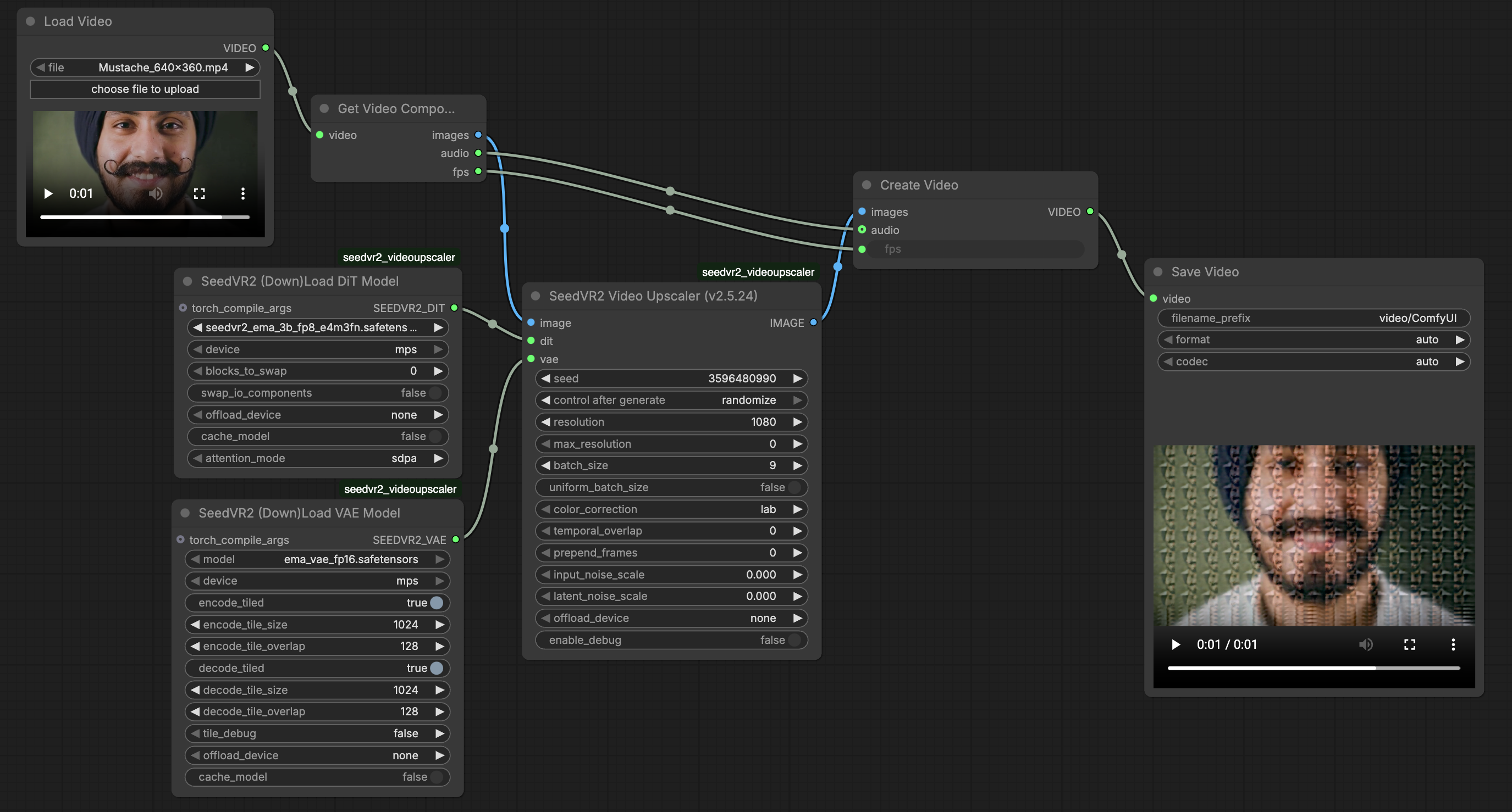 I’m new at this game so apologies if I’ve misunderstood, but I installed SeedVR2 v2.5.24 in ComfyUI on a Mac Studio M3 Ultra with 96GB, and while it works when upscaling still images, it produces similar garbage as TV when attempting a video. See attached workflow screenshot of the processed sample that comes with SeedVR2, which is typical of the results. Even at this size you can see it’s not right.