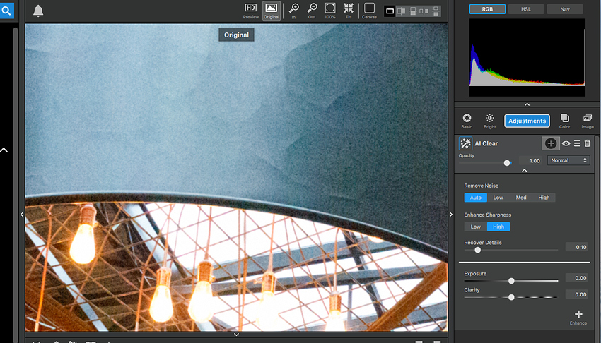 If I retain LR’s NR edits it looks pretty good. Is there something I’m missing or doing incorrectly? AI Clear format is TIFF in LR.