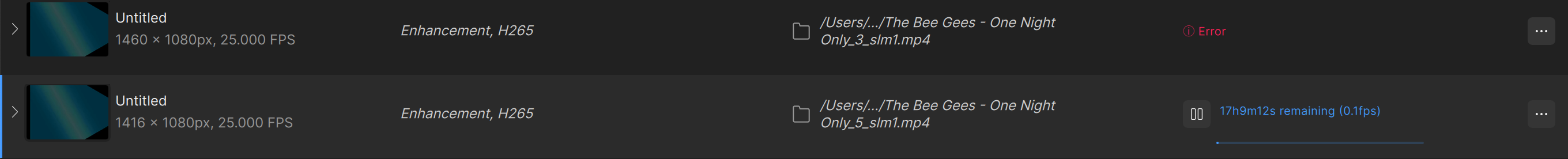 This is the exact same source file with (except for cropping the source a little bit on the left border at the second try) the exact same settings (2x upscale). 1460 x 1080 output size gives an error every time while 1416 x 1080 does work.