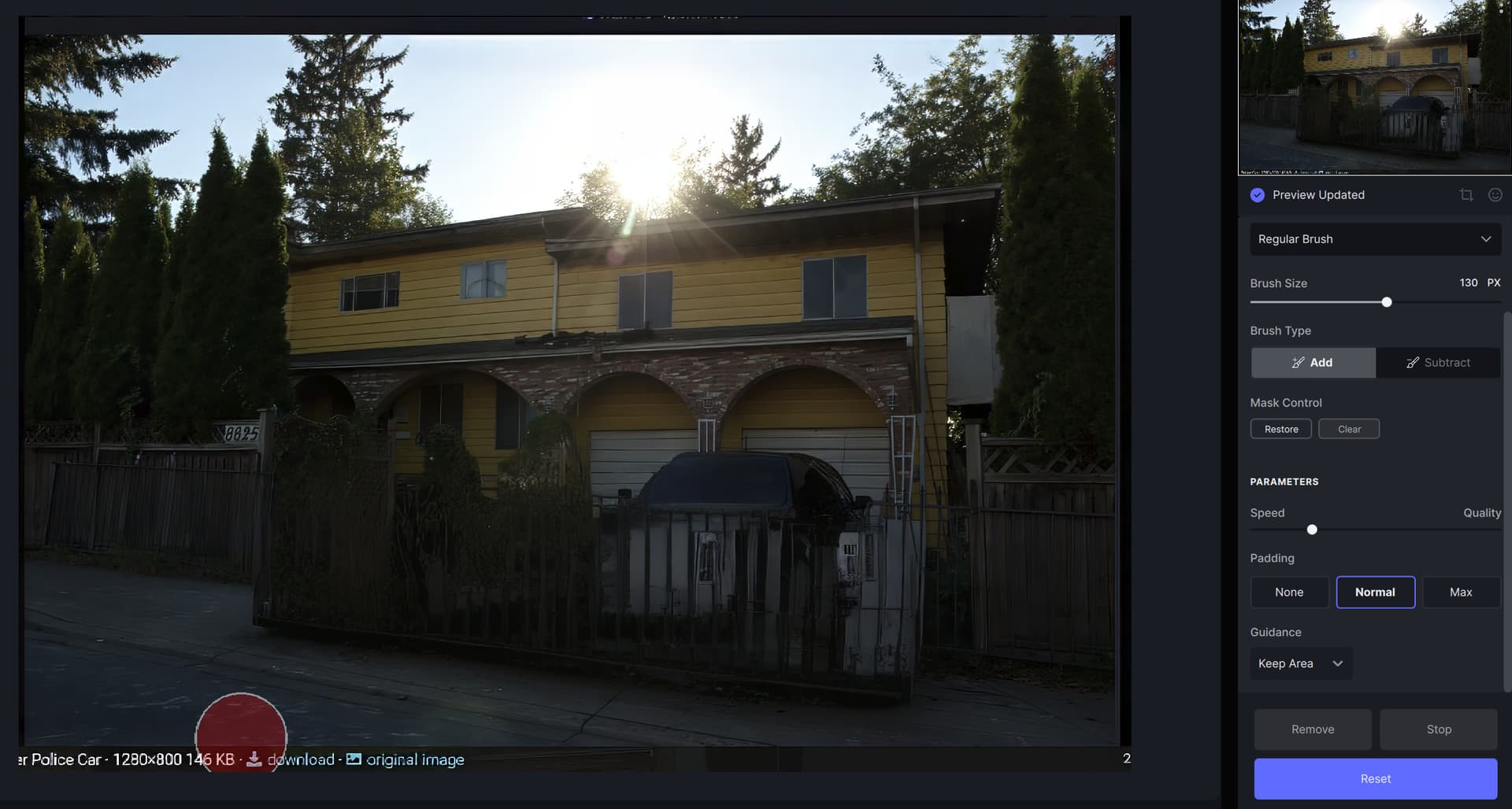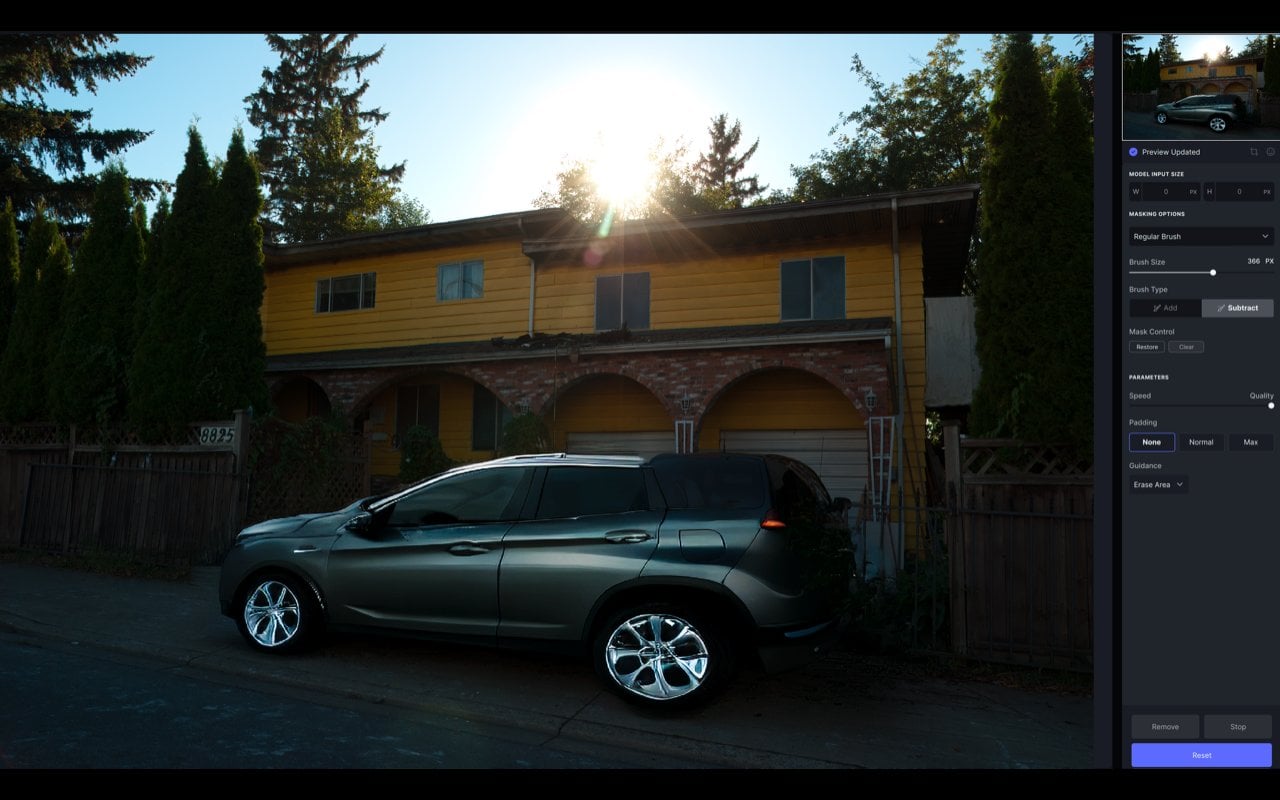 Meaning: when the car was placed in position it ‘was not’ cropped but the area around the car, van and 3 arches was erased in its layer. If I place that picture in Mask AI and and do auto select … it selects only the car and van and everything else is transparent…but when I choose 'Remove BG in Pixelmator… everything is gone except the car, van and the 3 arches (2) over the garage doors and roof line… Could that be why the red box is so large when I only select the car?