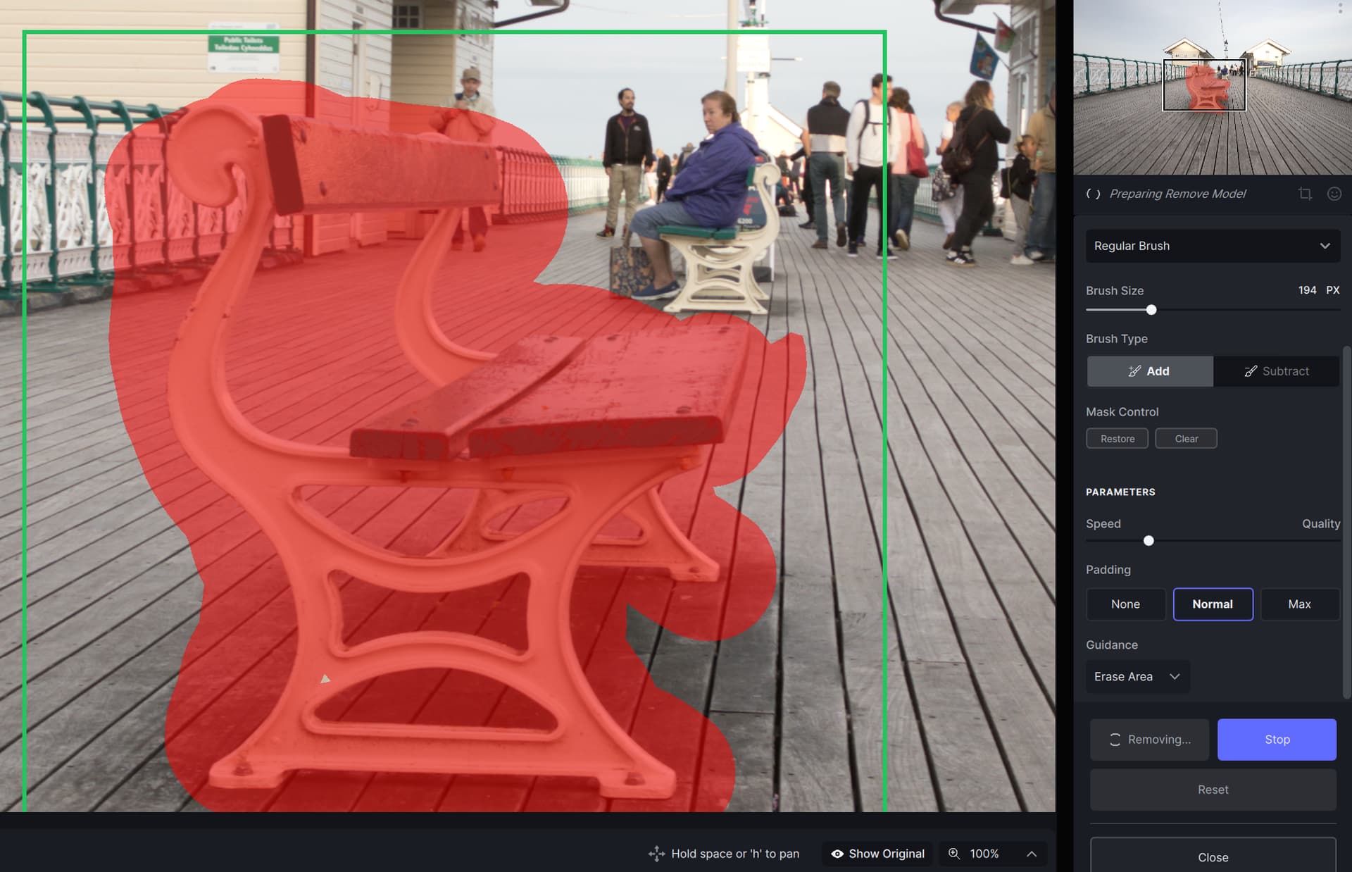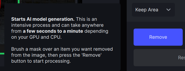 Remove in Photo AI has nothing to do with masking. You paint the area to be removed, it won’t leave a transparent background as ordinary masking will.
