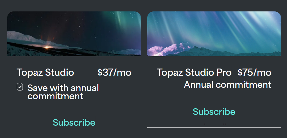 Am I missing something here you’re currently paying the Founders $173 a year which was the combined upgrade price for both Topaz Photo and Gigapixel not the full price and you’re now saying because you don’t use Video that’s to much and Topaz should have a further two options one for Photographers and one for Videographer Founders members and it should be around $80 a year for either