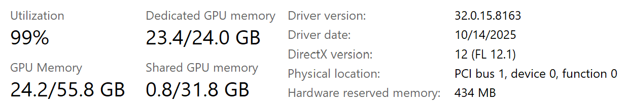 My machine has an Intel i9-13900K 3.00GHz processor with 64GB of RAM and a NVIDIA GeForce RTX4090 with